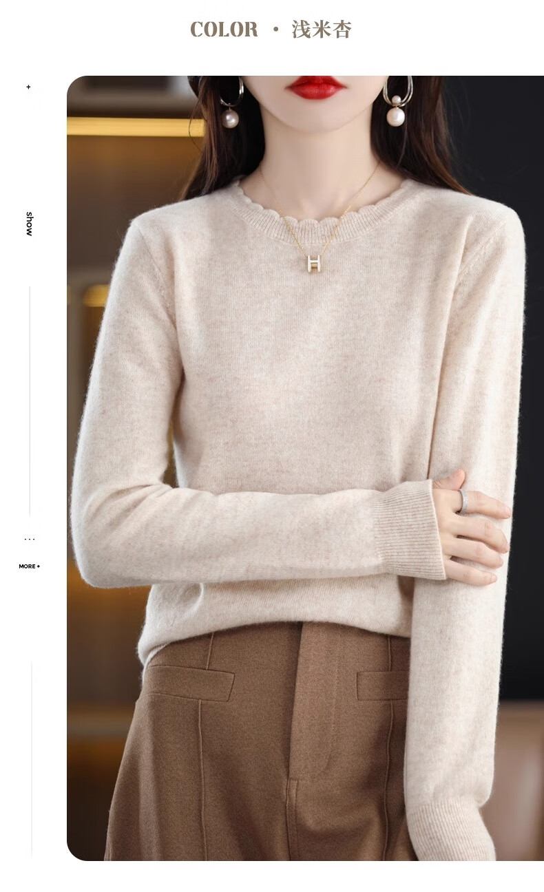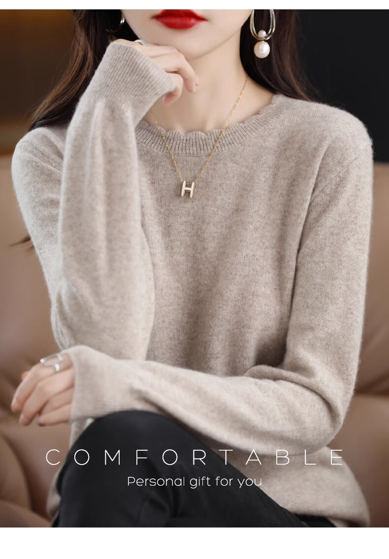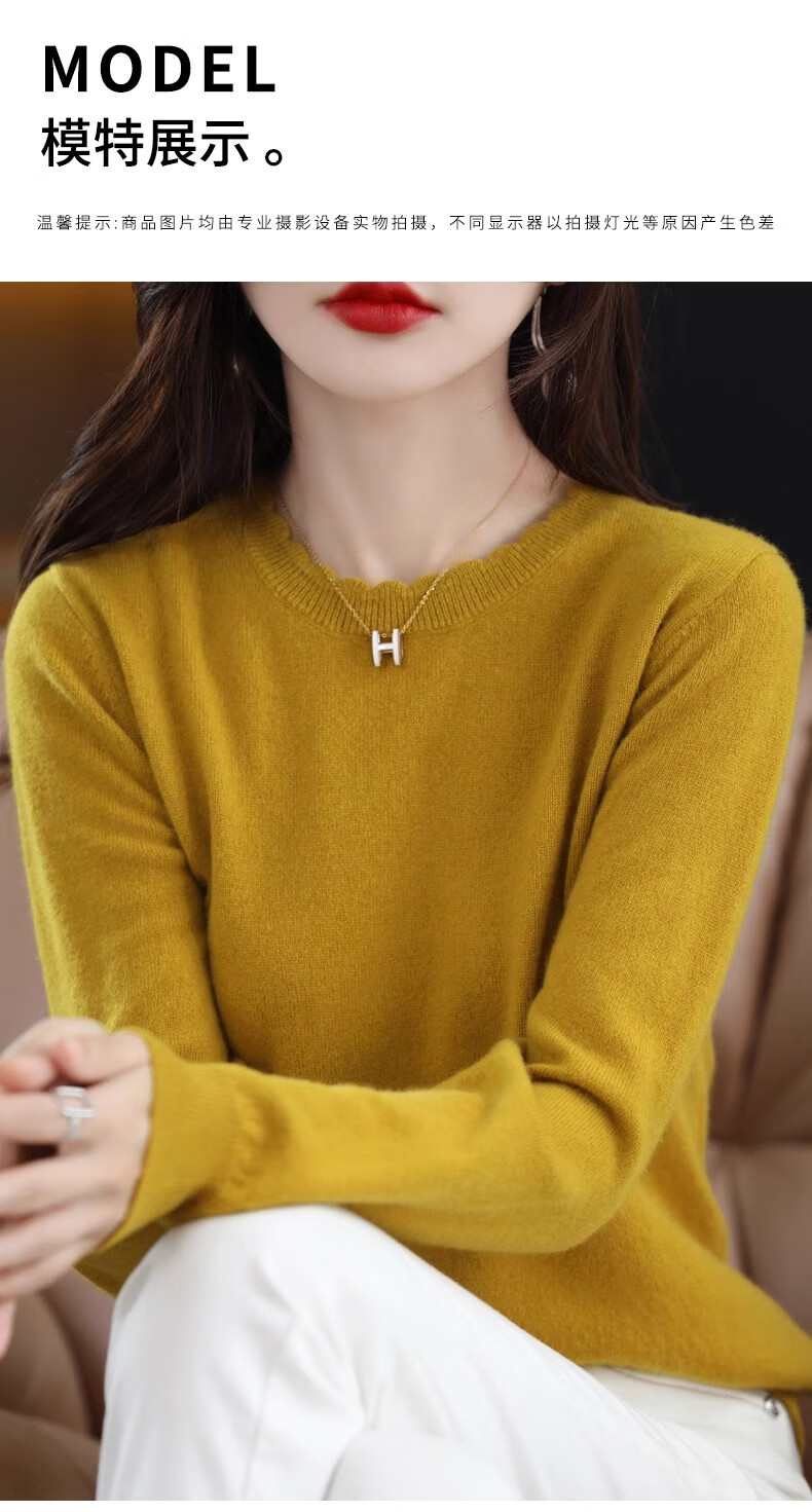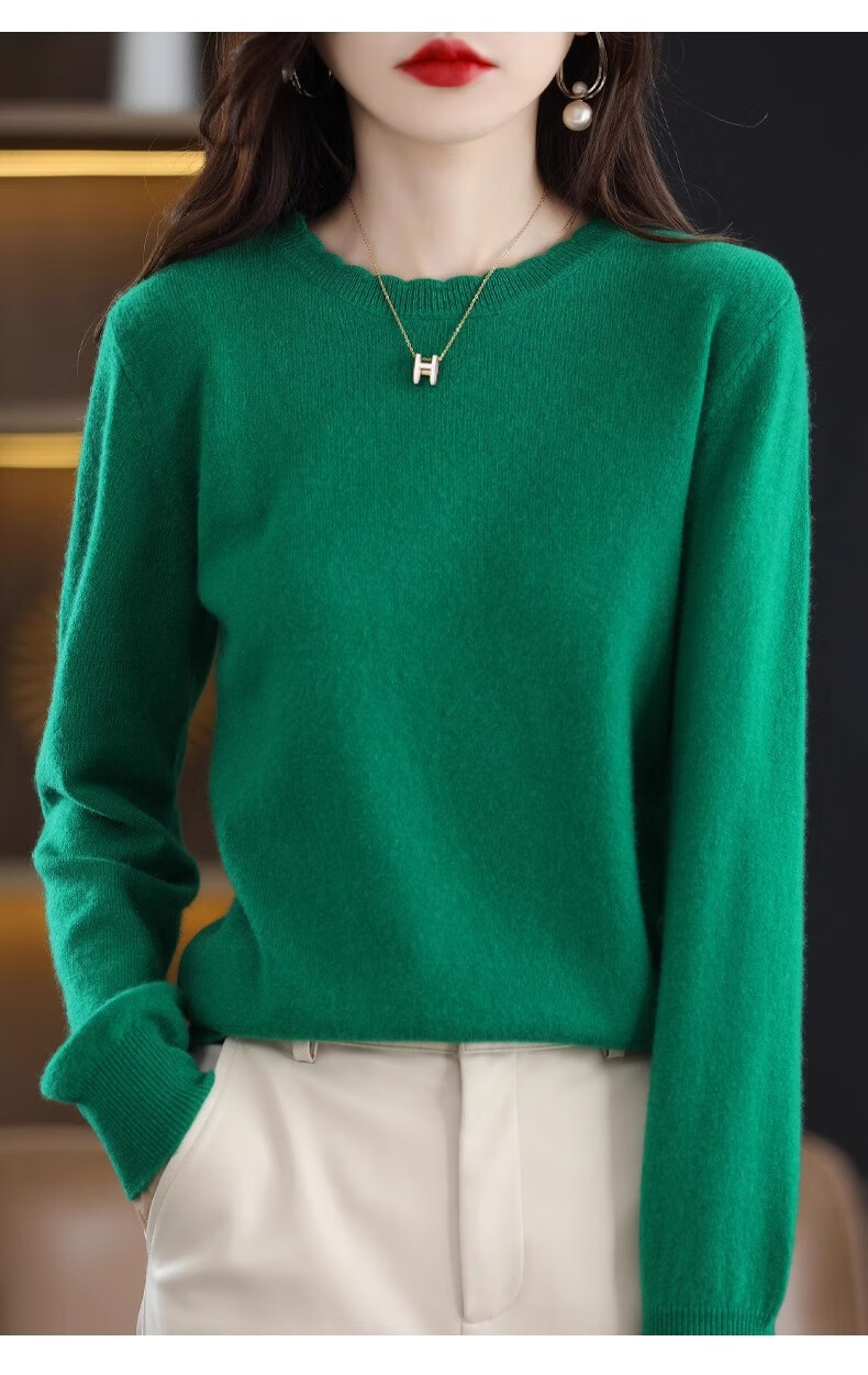Yu Zhaolin round neck lace knitted bottoming shirt for women spring, autumn and winter 2025 new long-sleeved loose soft waxy pullover sweater
