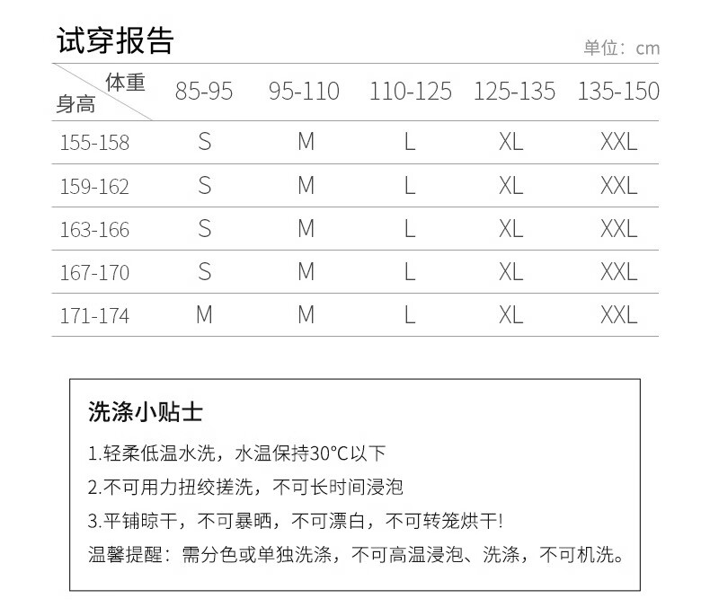 China (cm) 160-165/84-86 165-170 / 88-90 167-172 / 92-96 168-173 / 98-102 170-176 / 106-110