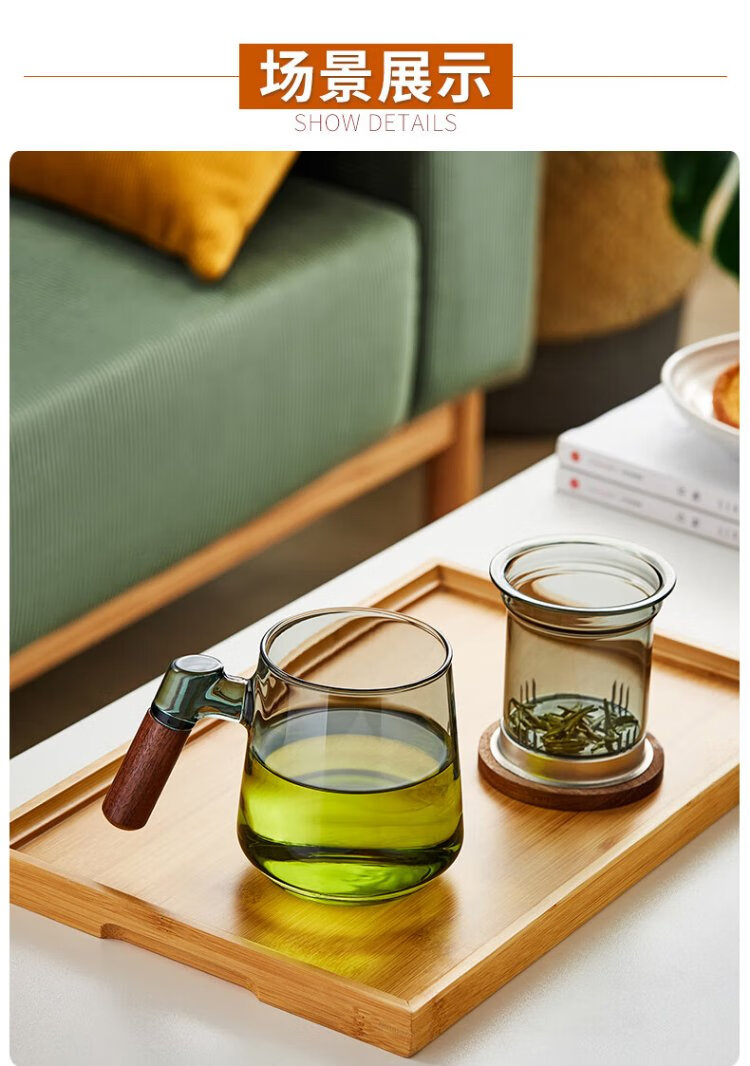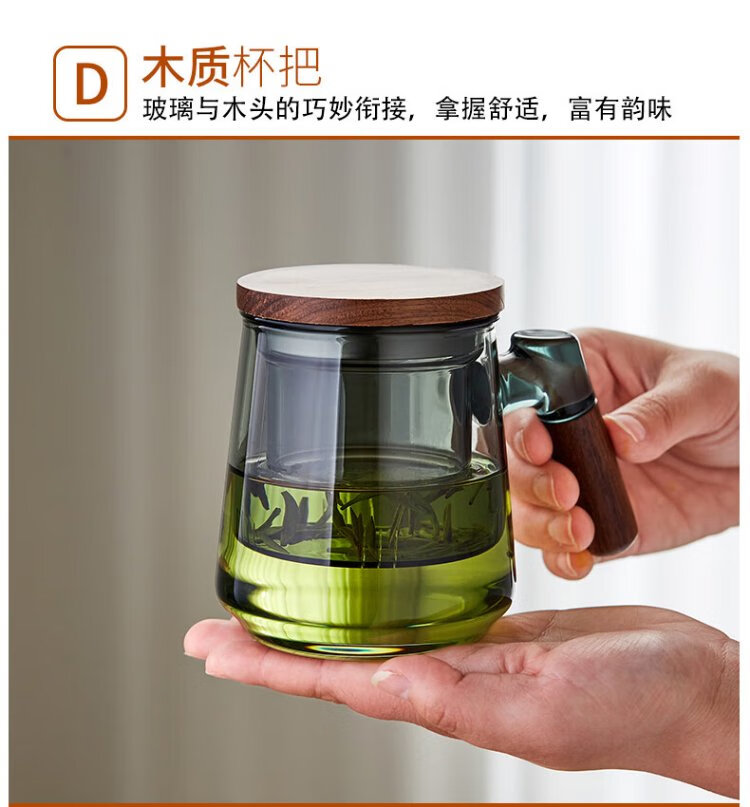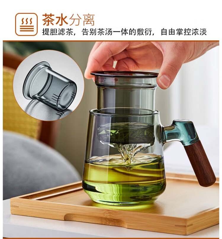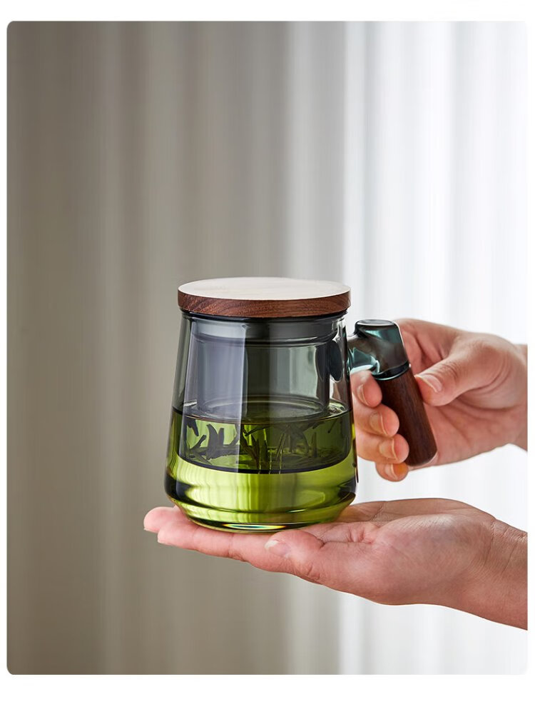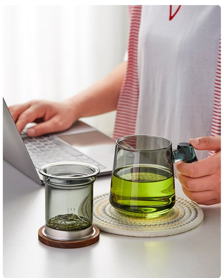 Mesni tea cup glass tea cup thickened heat-resistant dark green glass filter tea water separation cup tea set flower tea cup
