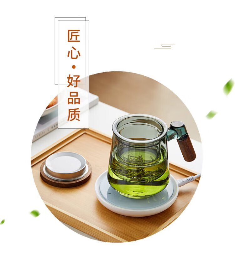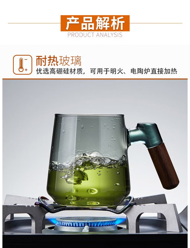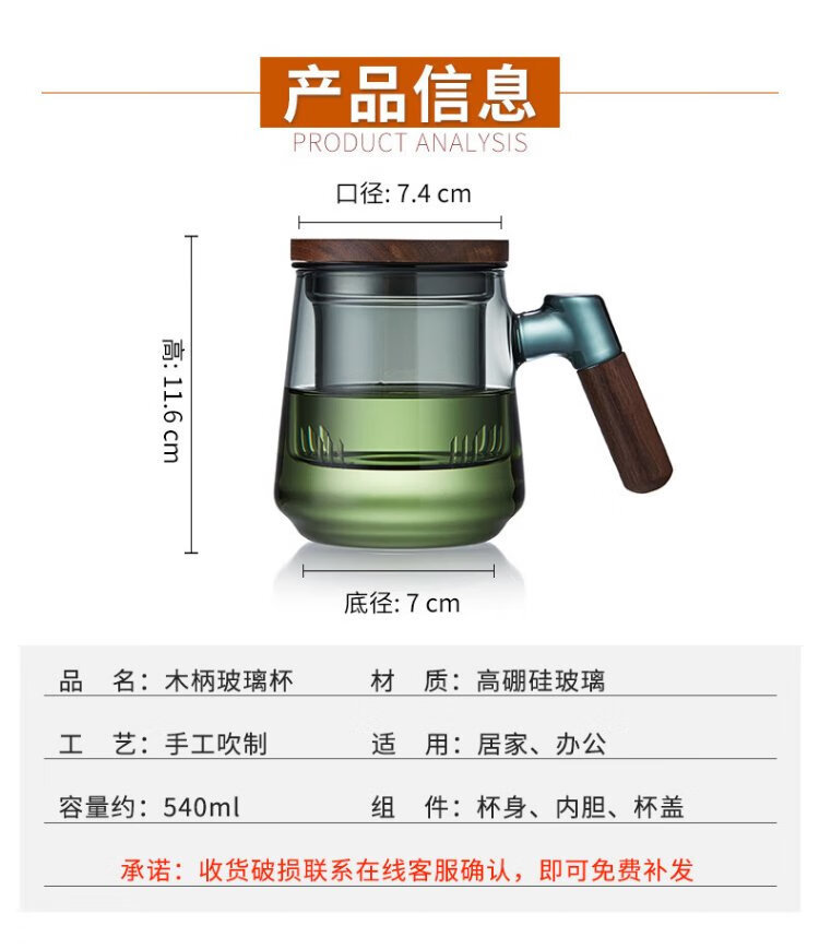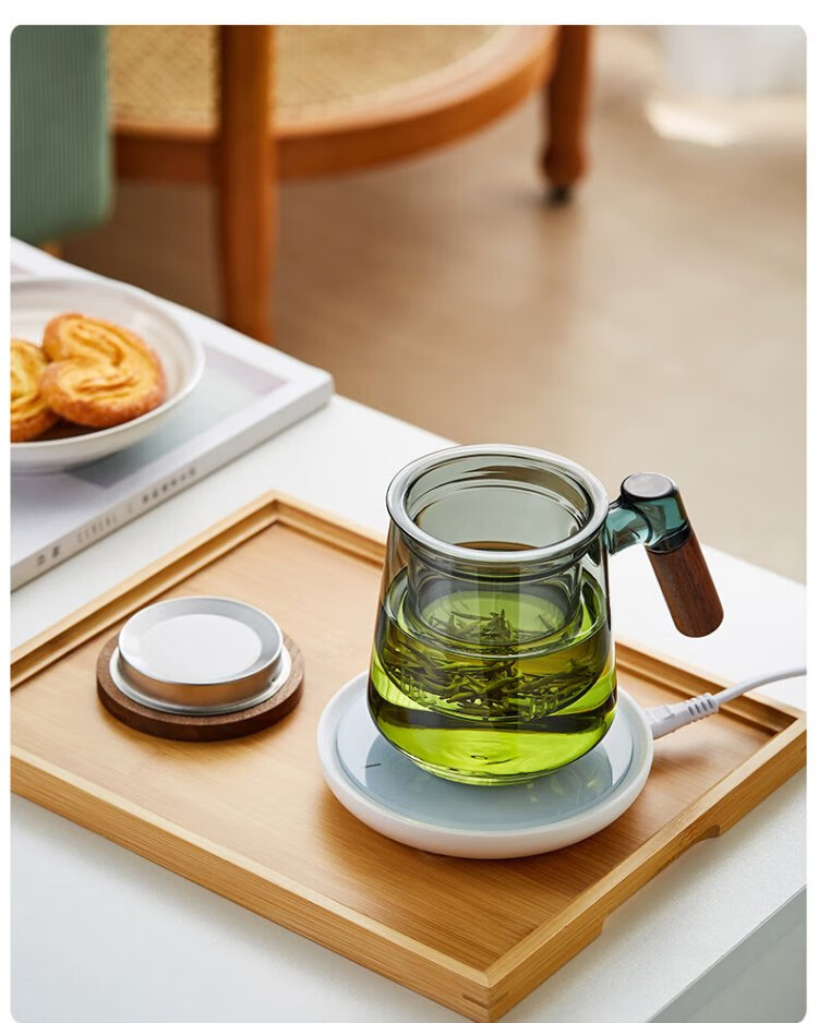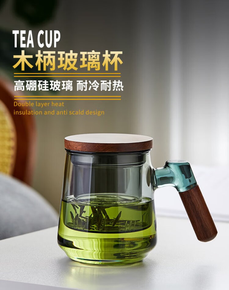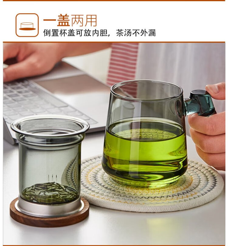Mesni tea cup glass tea cup thickened heat-resistant dark green glass filter tea water separation cup tea set flower tea cup