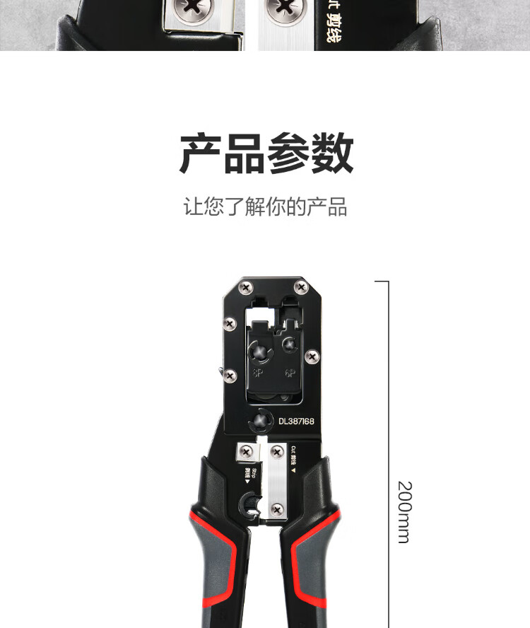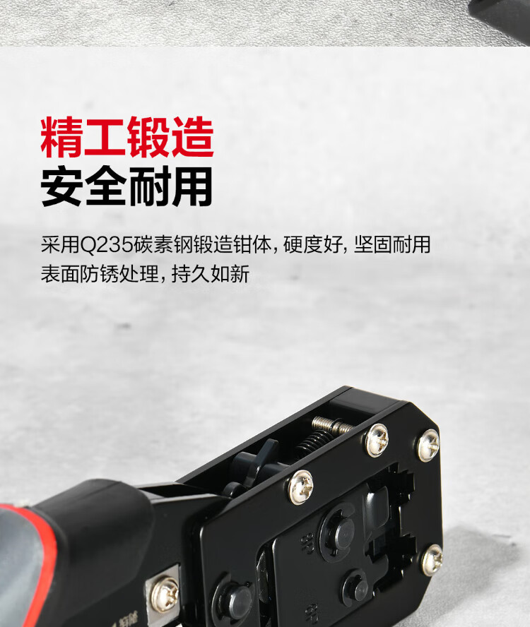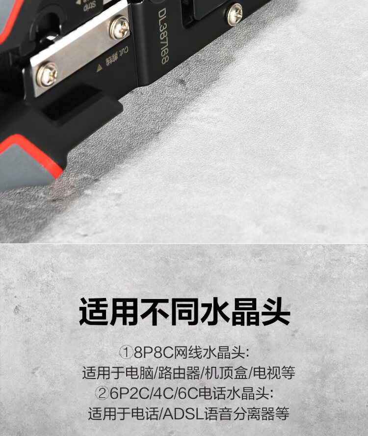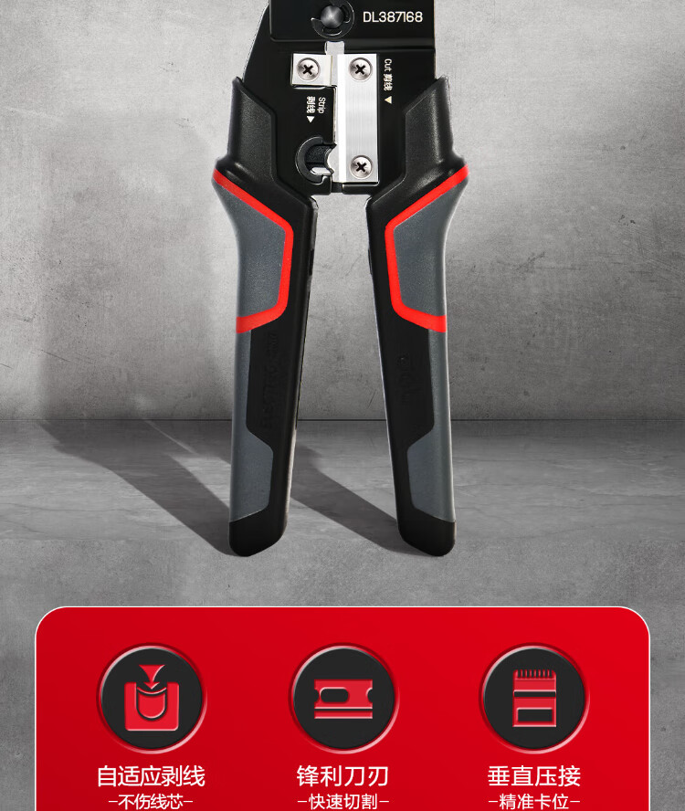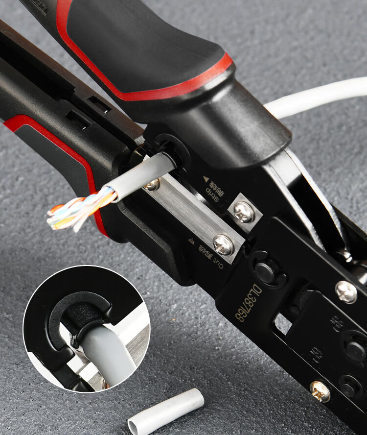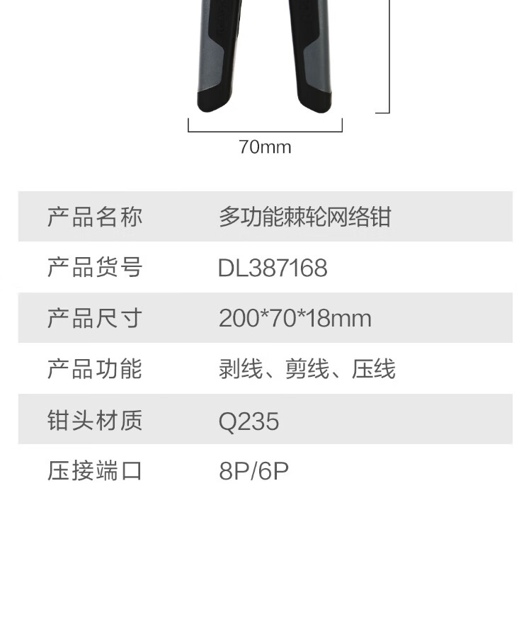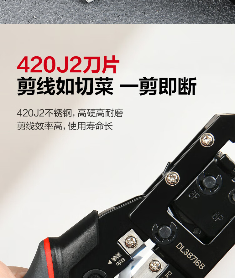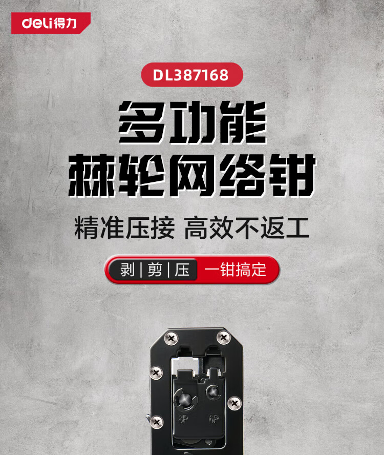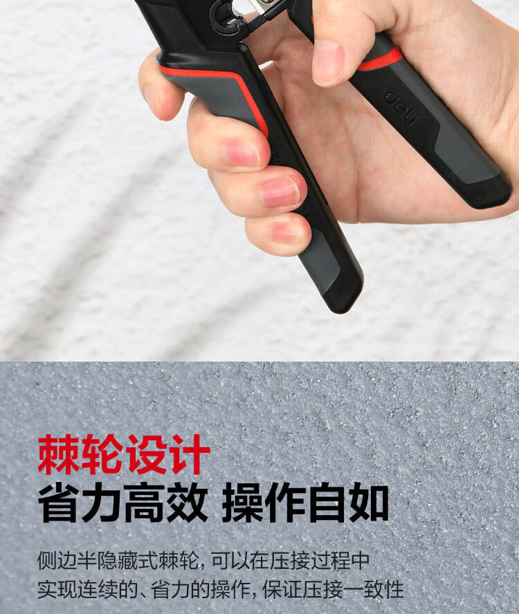 Deli 6P8P multifunctional ratchet network pliers network cable pliers vertical crimping phone crystal head wire cutting and crimping wire stripping pliers