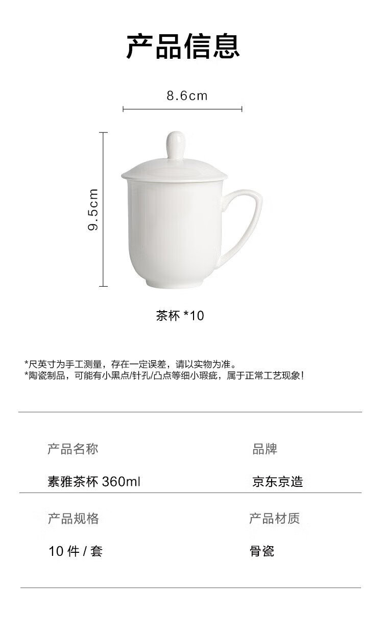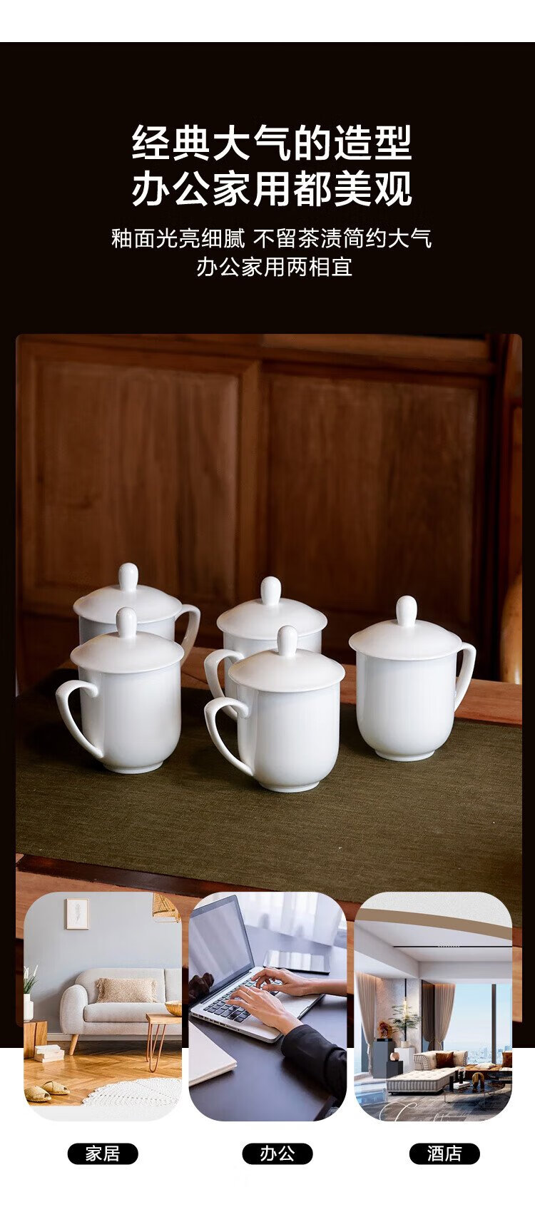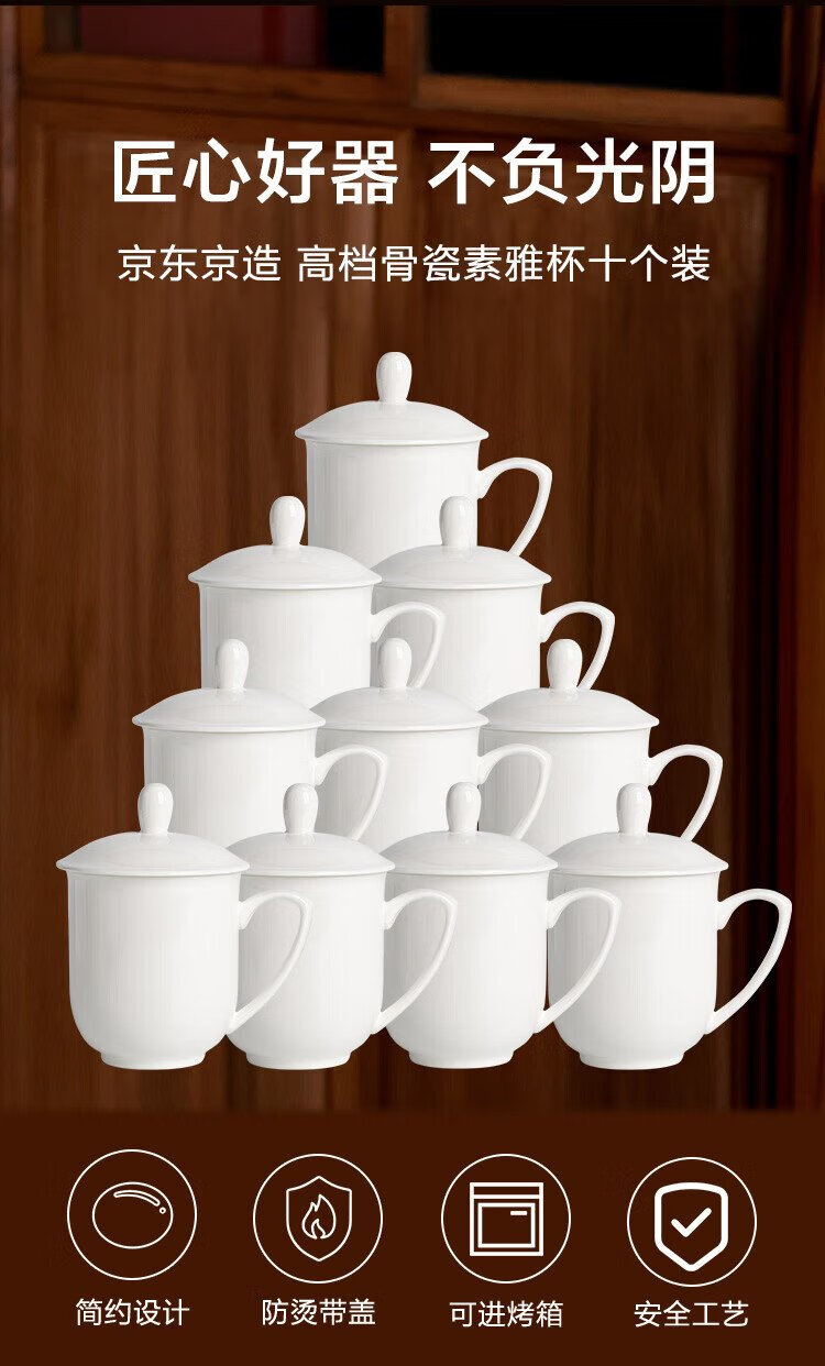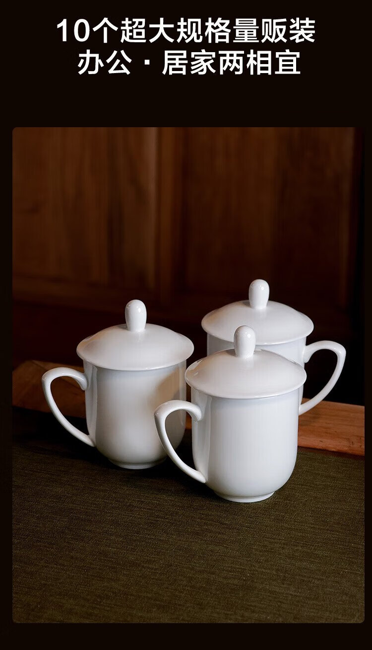 Made in Tokyo, tea cup, ceramic tea cup, office conference cup with lid, pure white, customizable, 360ml, 10 pieces