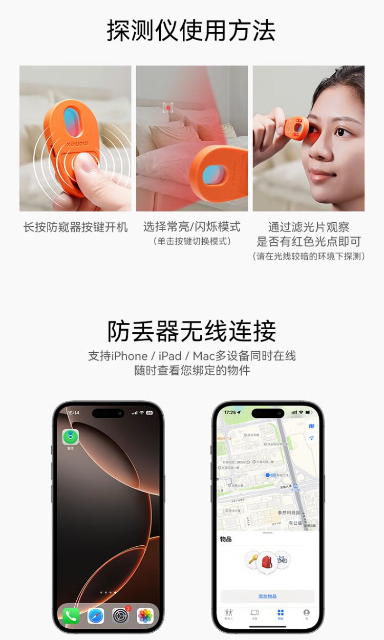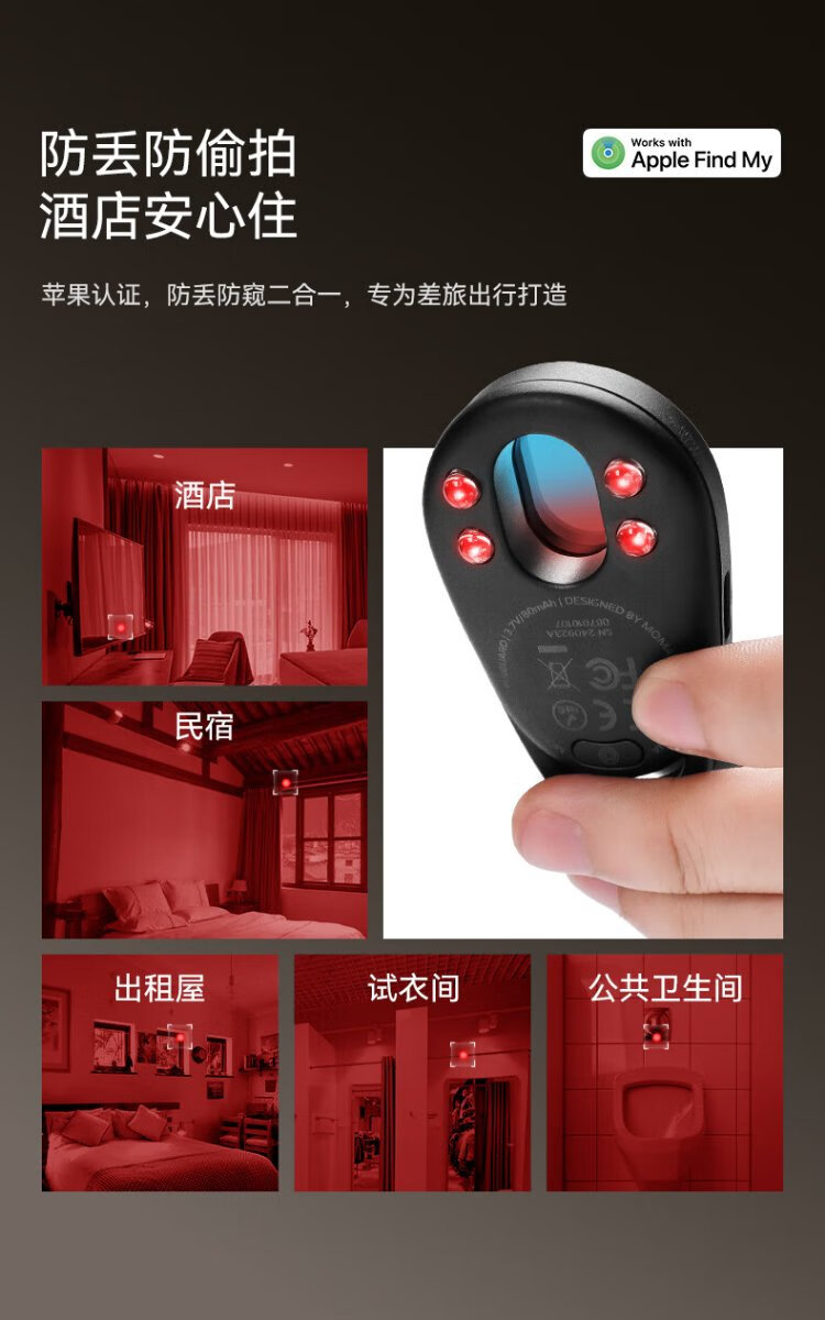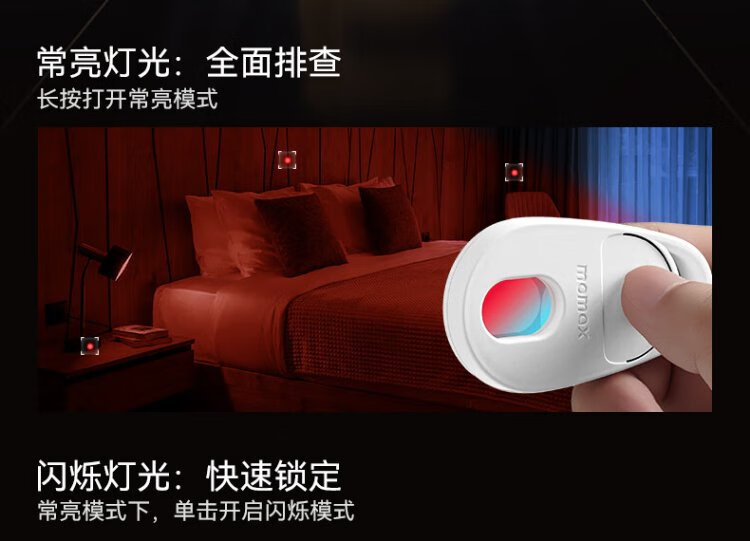 MOMAX hotel camera detector anti-peep detector positioning tracking anti-lost device infrared signal anti-peeping camera inspection monitoring portable suitable for hotels and B&Bs