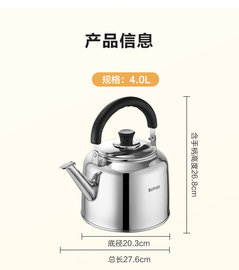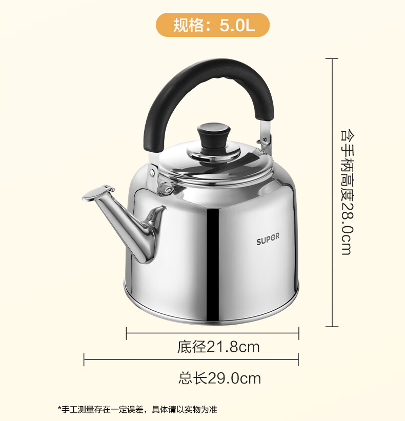 SUPOR 304 stainless steel whistle kettle 5L kettle open flame gas induction cooker universal ES50AKS01