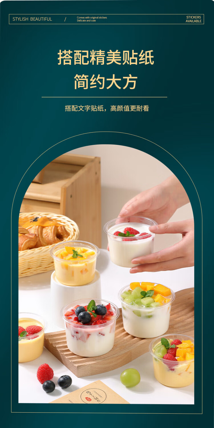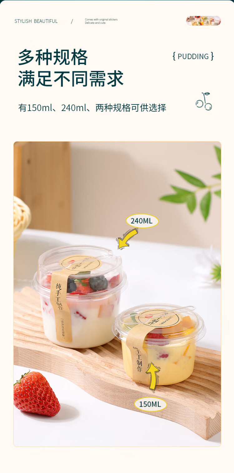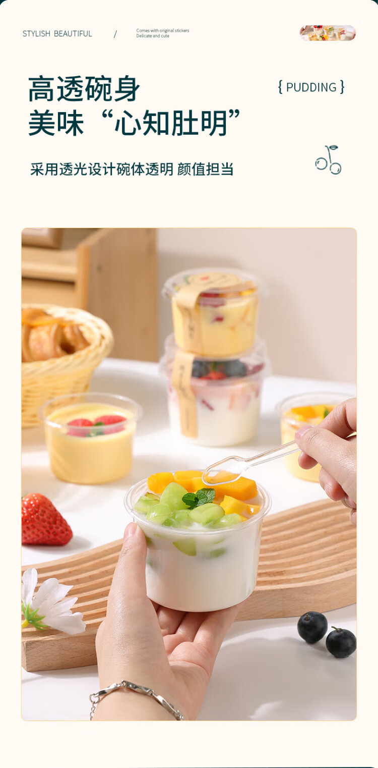 Baijie disposable pudding cup yogurt bowl mousse cake box fruit ice cream box 150ml 20 pieces + scoop + sticker