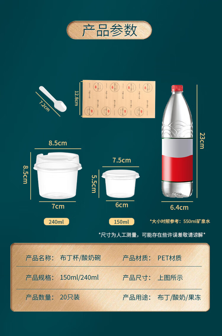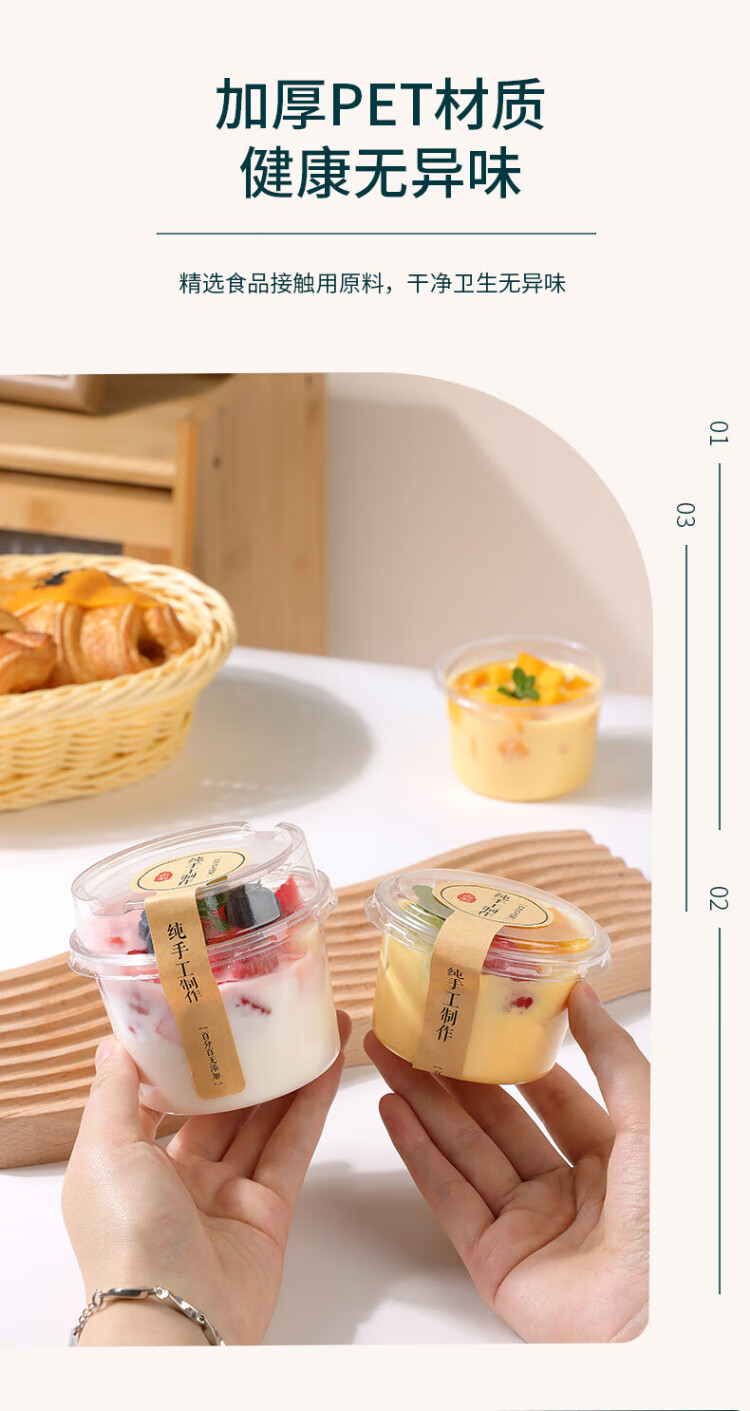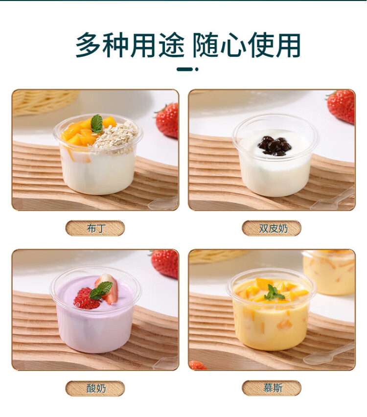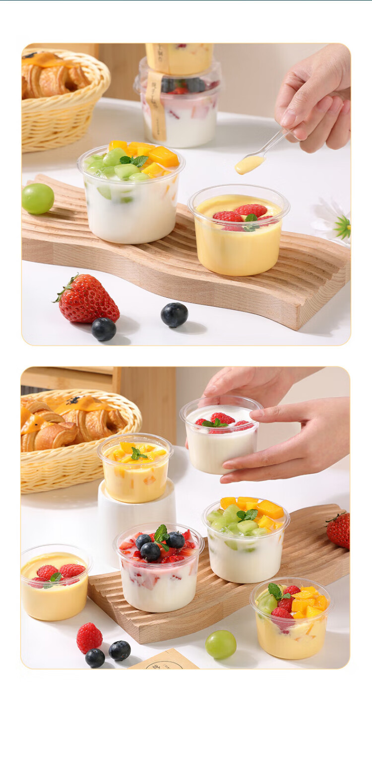 Baijie disposable pudding cup yogurt bowl mousse cake box fruit ice cream box 150ml 20 pieces + scoop + sticker