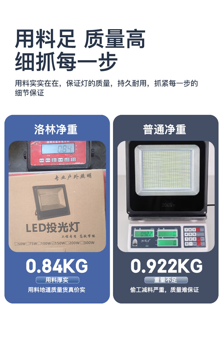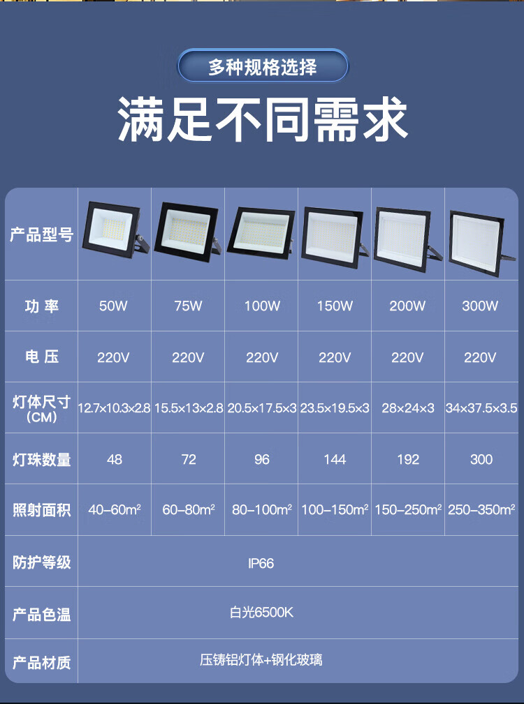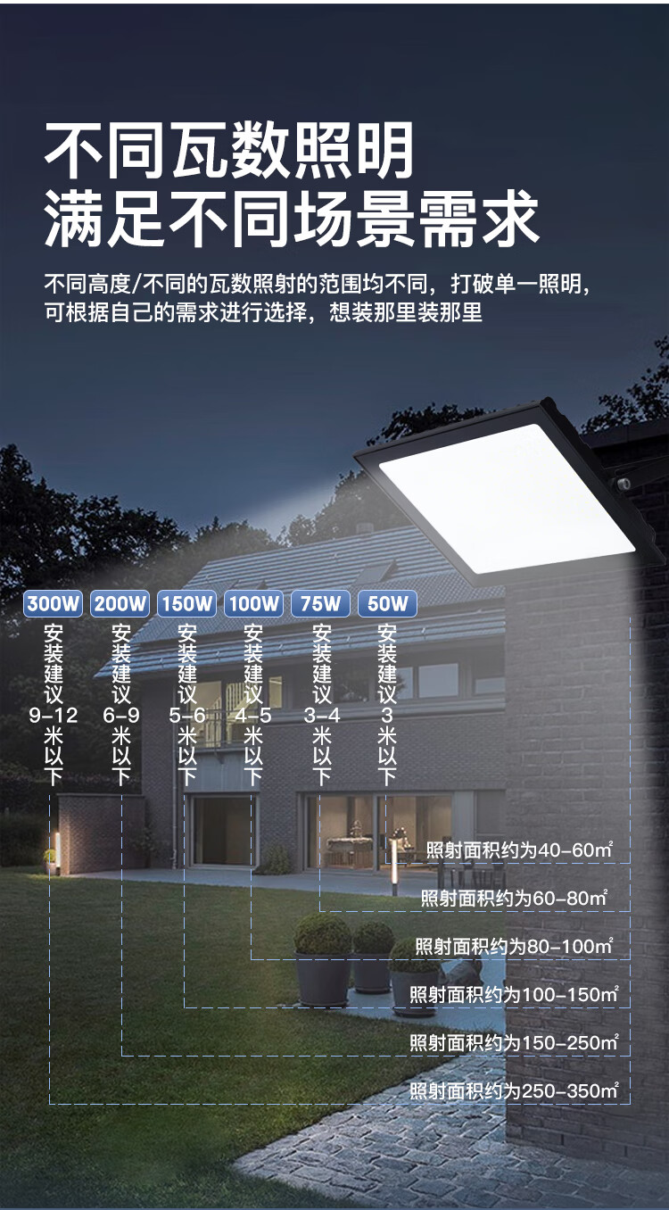 Lorraine led floodlight spotlight outdoor courtyard factory lighting outdoor searchlight strong light IP66 waterproof super bright advertising light 50W floodlight white light 6500K die-cast aluminum