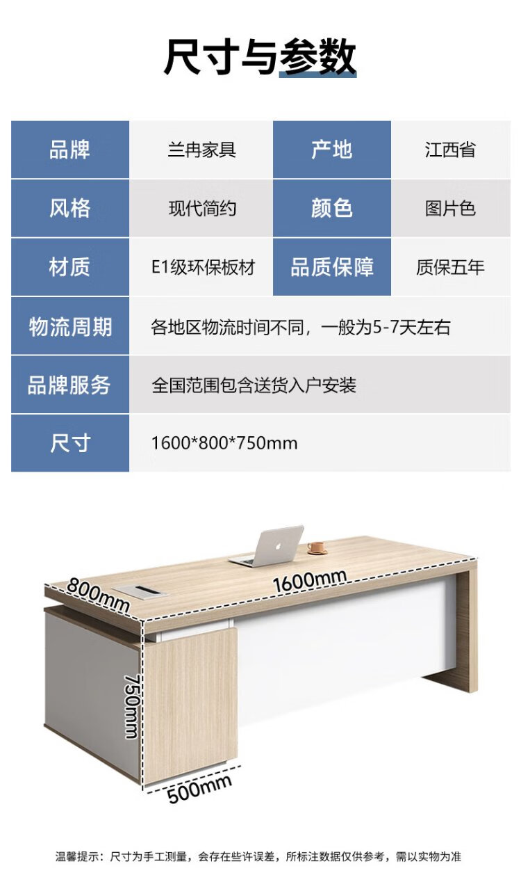 Lanran desk boss desk computer desk office furniture executive manager desk simple modern desk 1.6m without chair