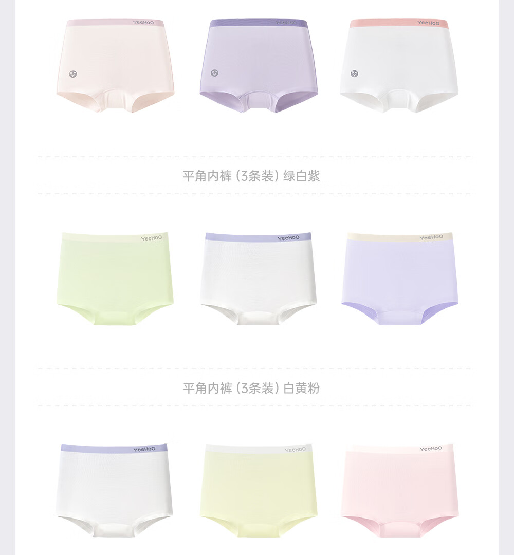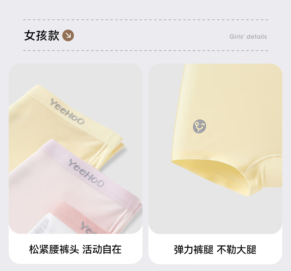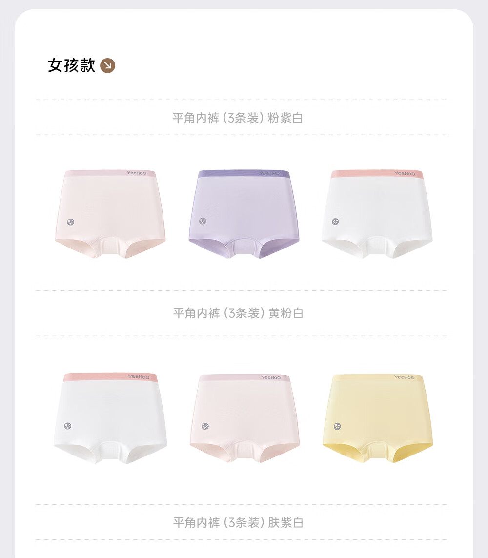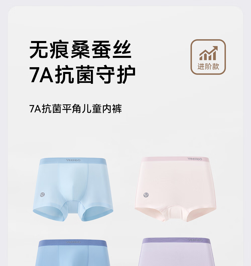 YEEHOO 7A antibacterial traceless mulberry silk children's underwear, skin-friendly and close-fitting pants for girls