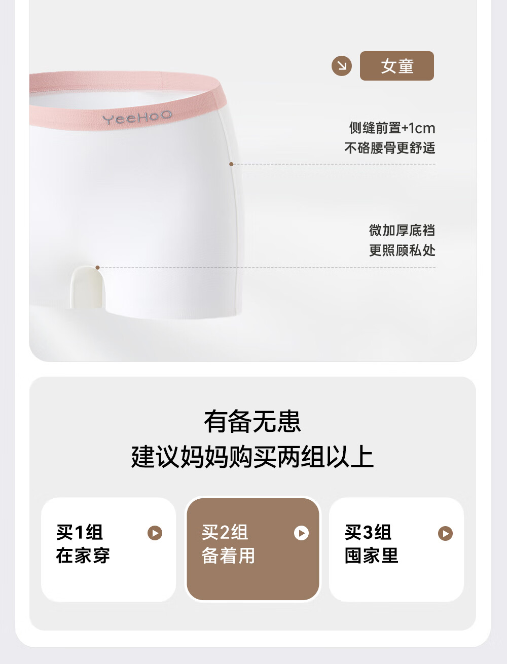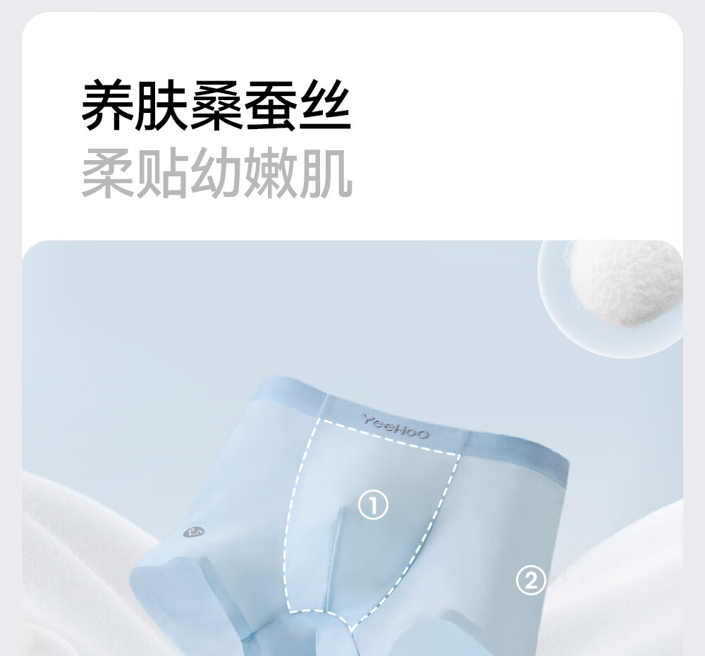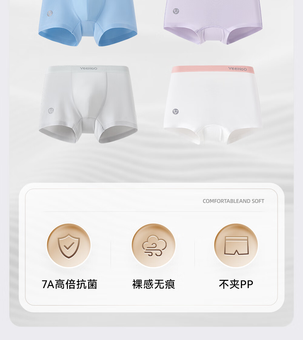 YEEHOO 7A antibacterial traceless mulberry silk children's underwear, skin-friendly and close-fitting pants for girls