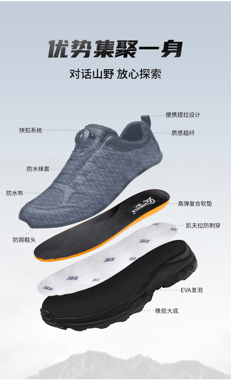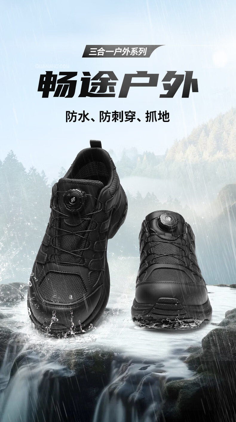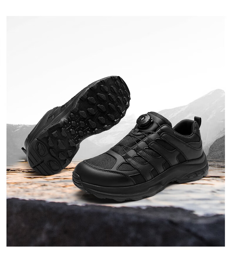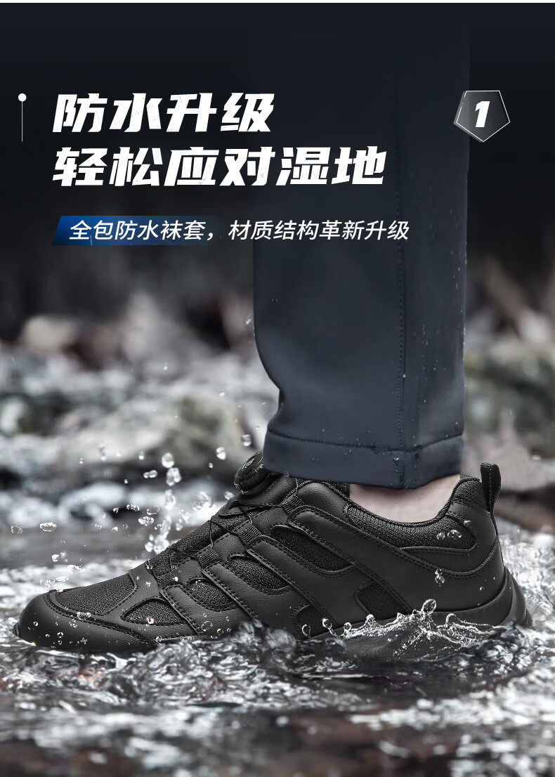 Qiangren Outdoor Waterproof Sports and Casual Men's Shoes 3515 Lace-Free Running Training Shoes JDA382A Black 42