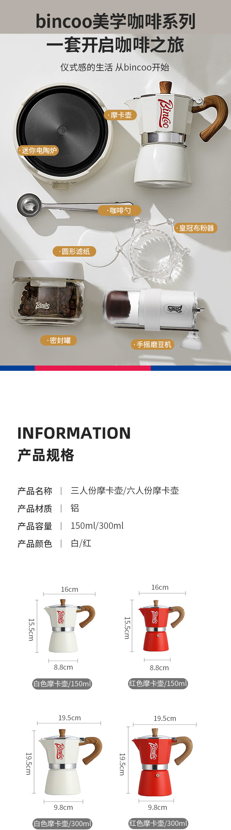 Bincoo Moka Pot Set Italian Espresso Coffee Pot Household Small Electric Ceramic Stove Coffee Maker