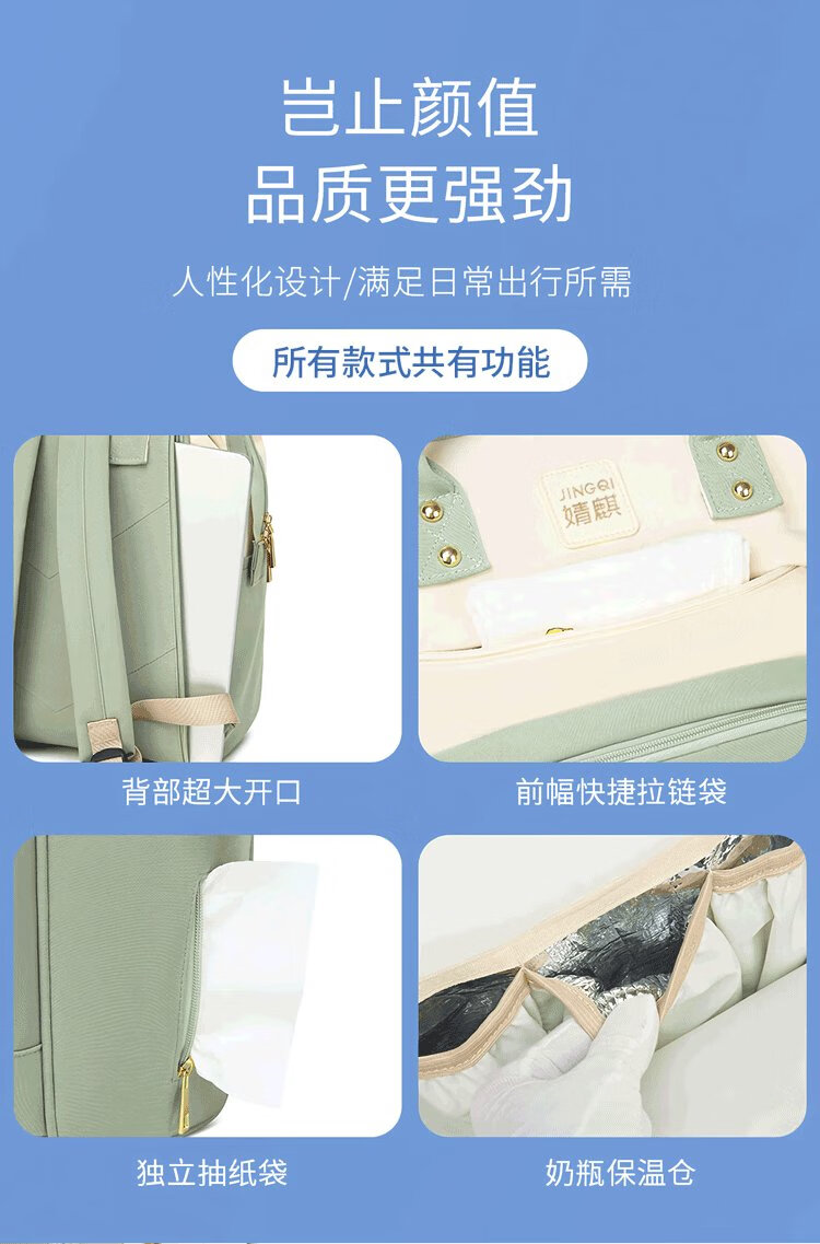 JOYNCLEON Mommy Bag Multifunctional Large Capacity Shoulder Portable Outing Lightweight High-Looking Mother and Baby Bag Green Jwc156189