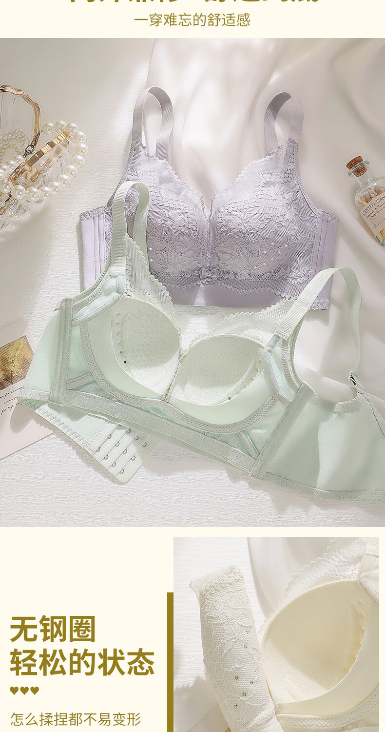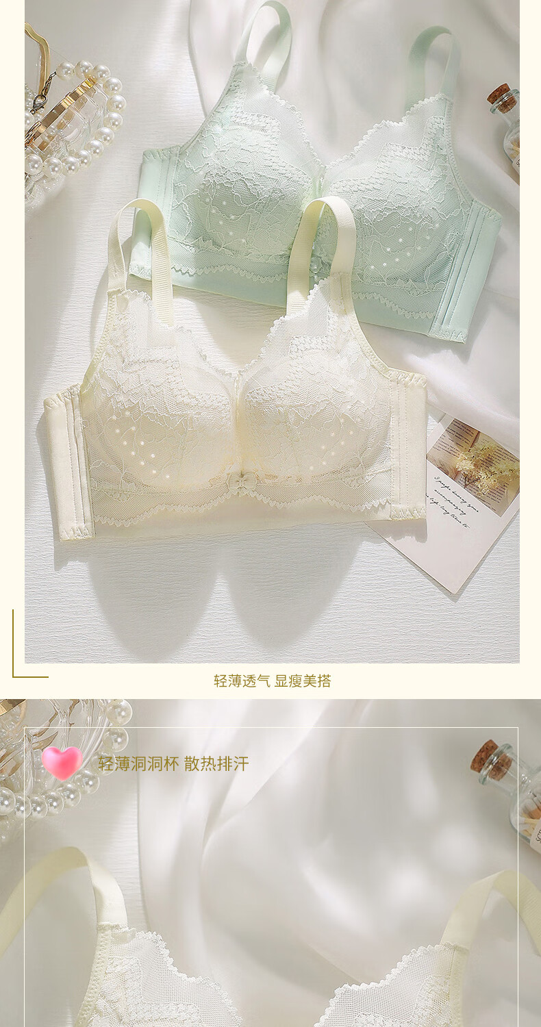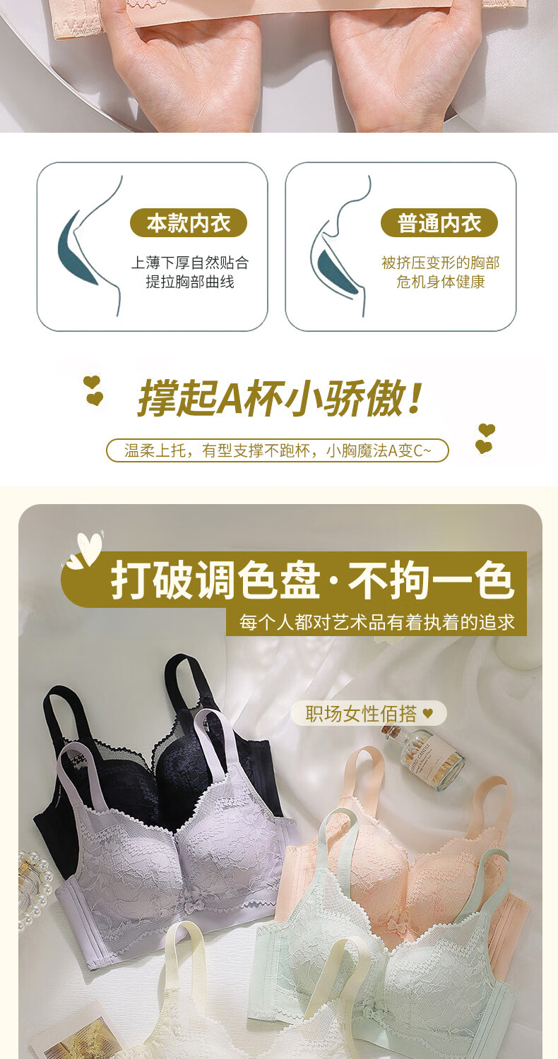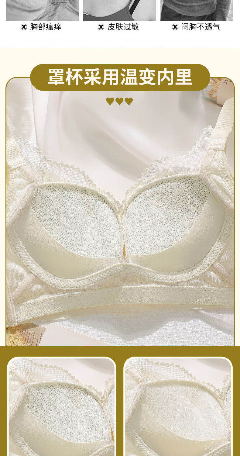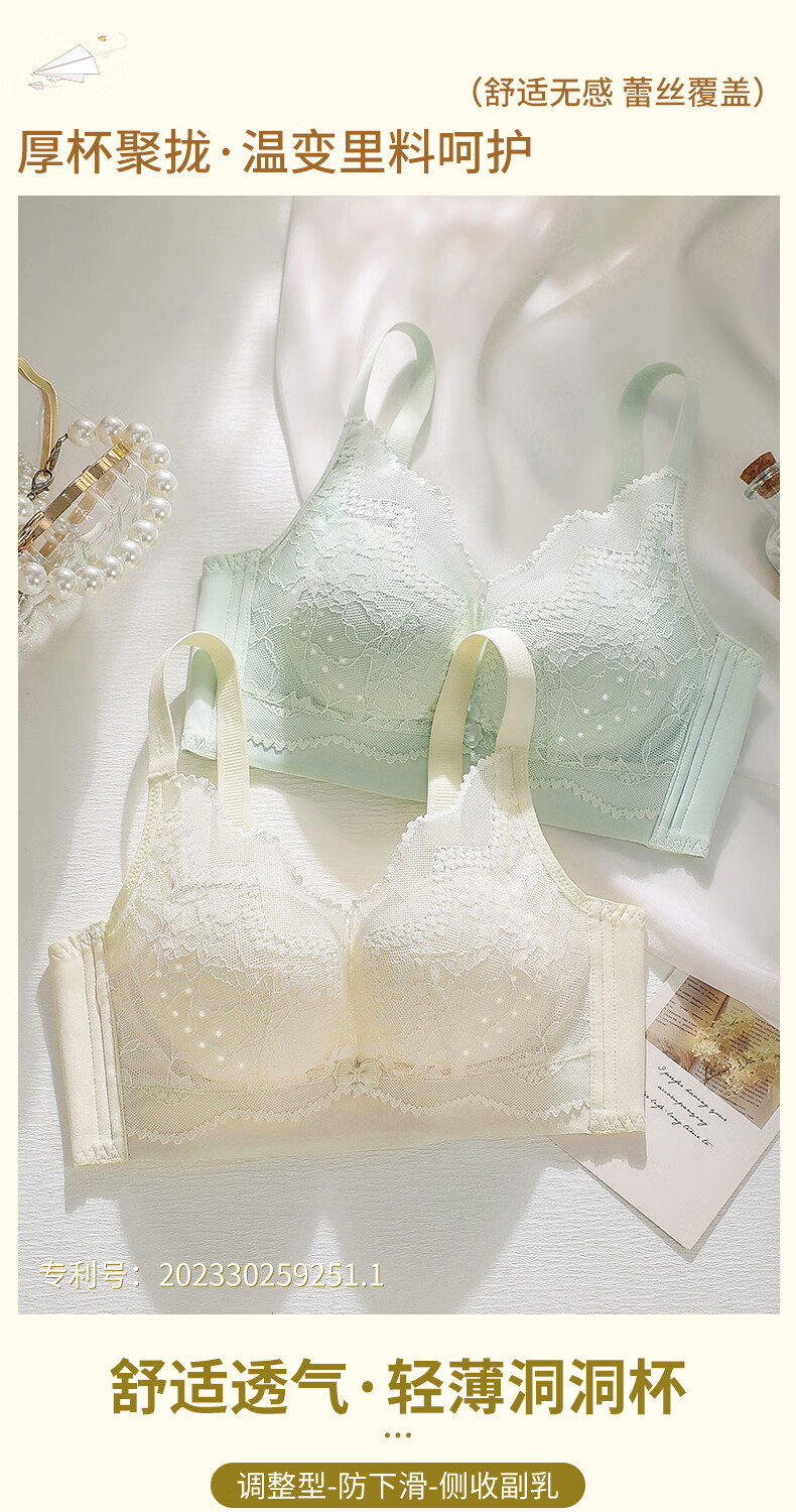 Oudifen underwear for women with small breasts, push-up seamless lace bra, temperature-changing inner cup, soft support, top support, side-shrinking bra without wire rings