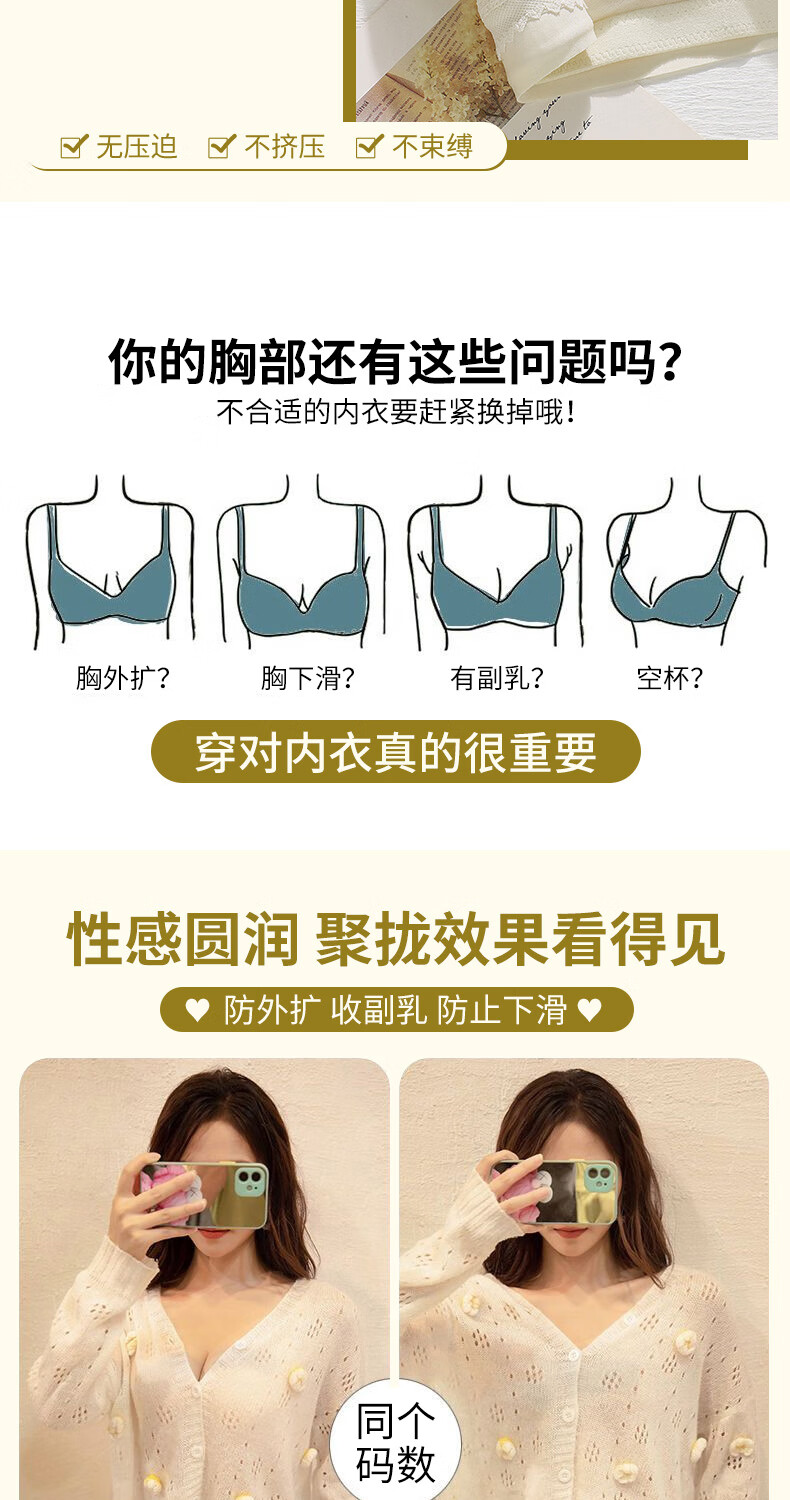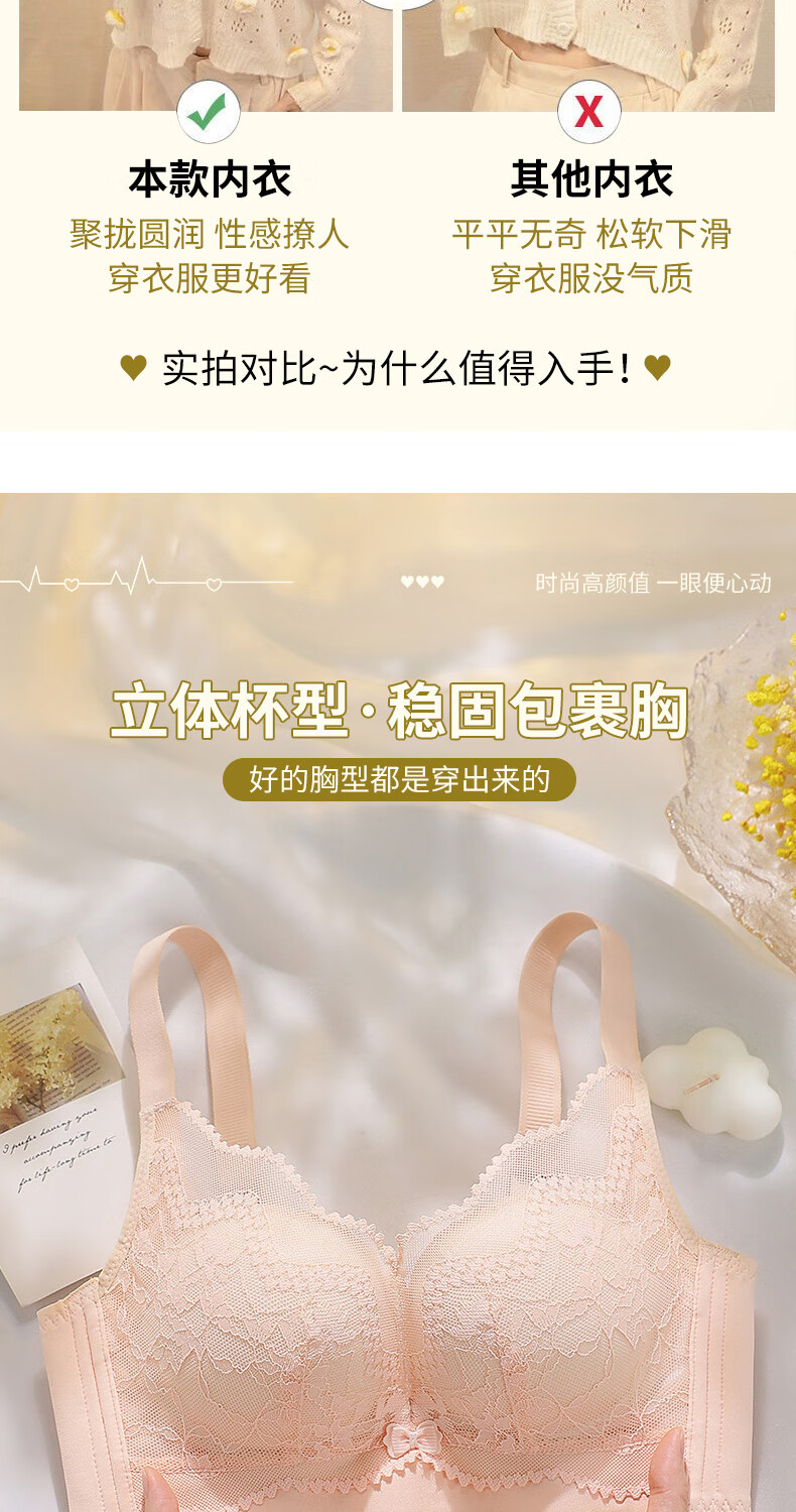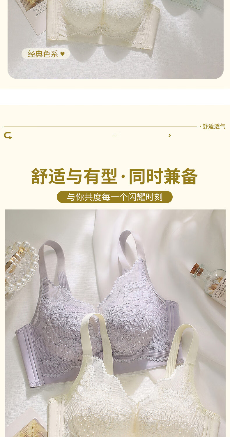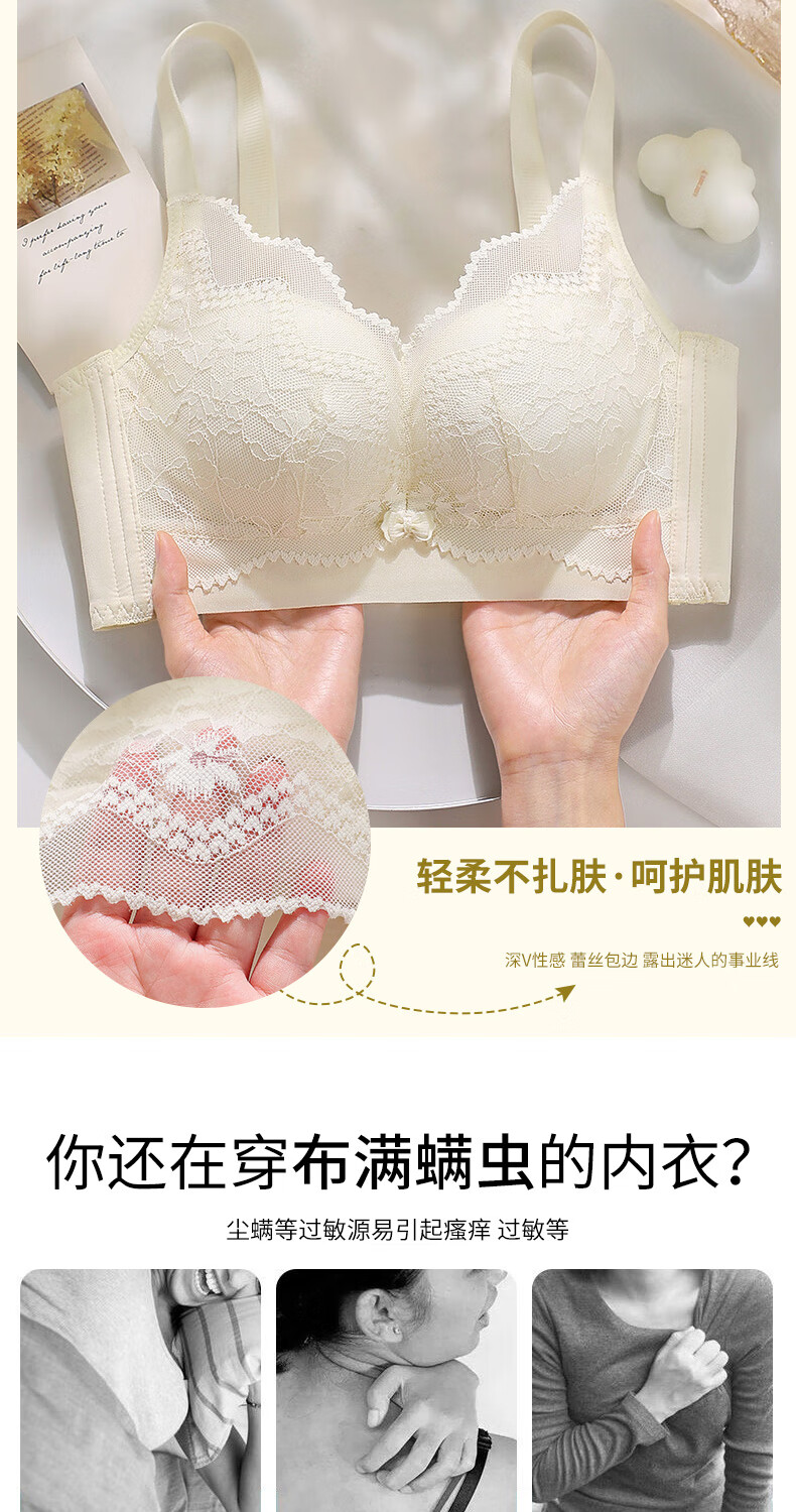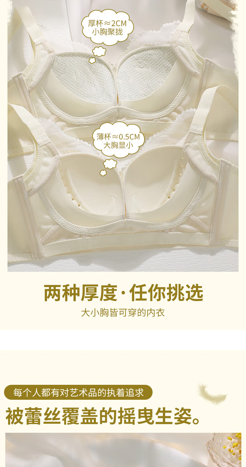 Oudifen underwear for women with small breasts, push-up seamless lace bra, temperature-changing inner cup, soft support, top support, side-shrinking bra without wire rings
