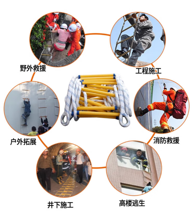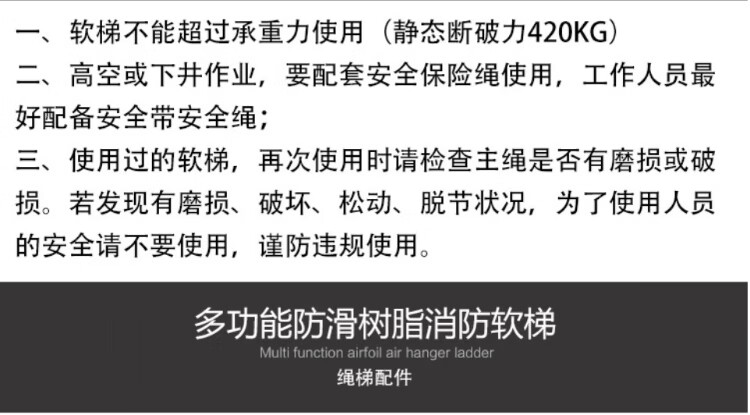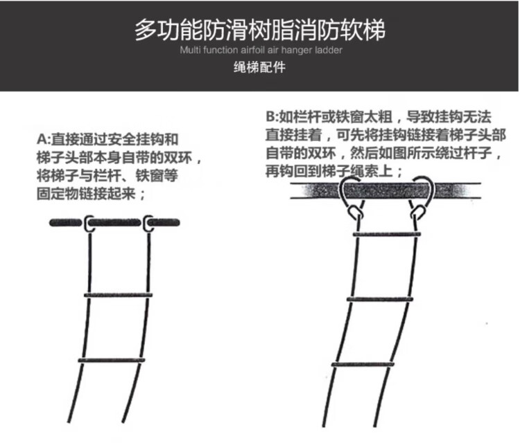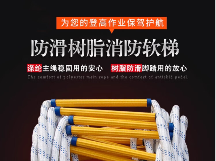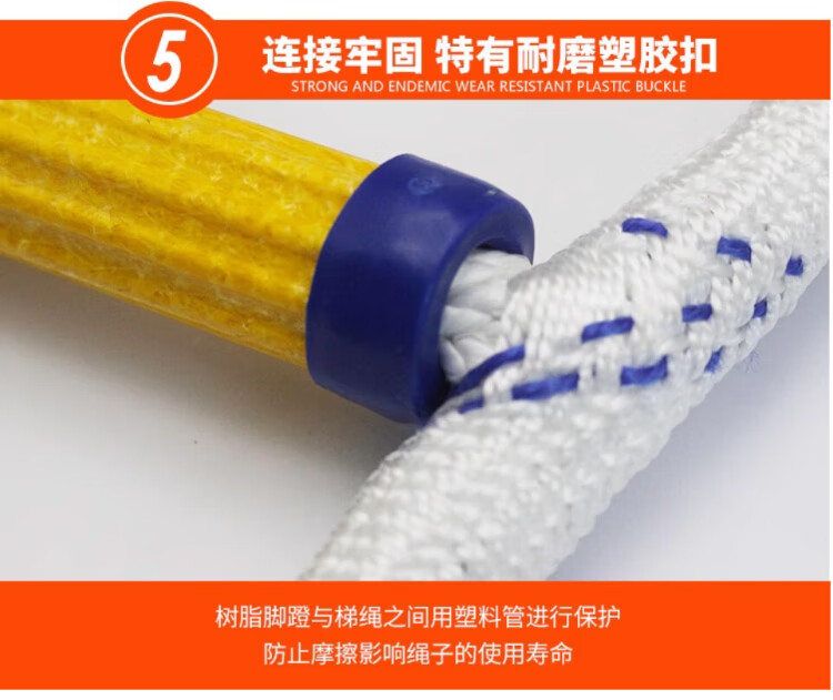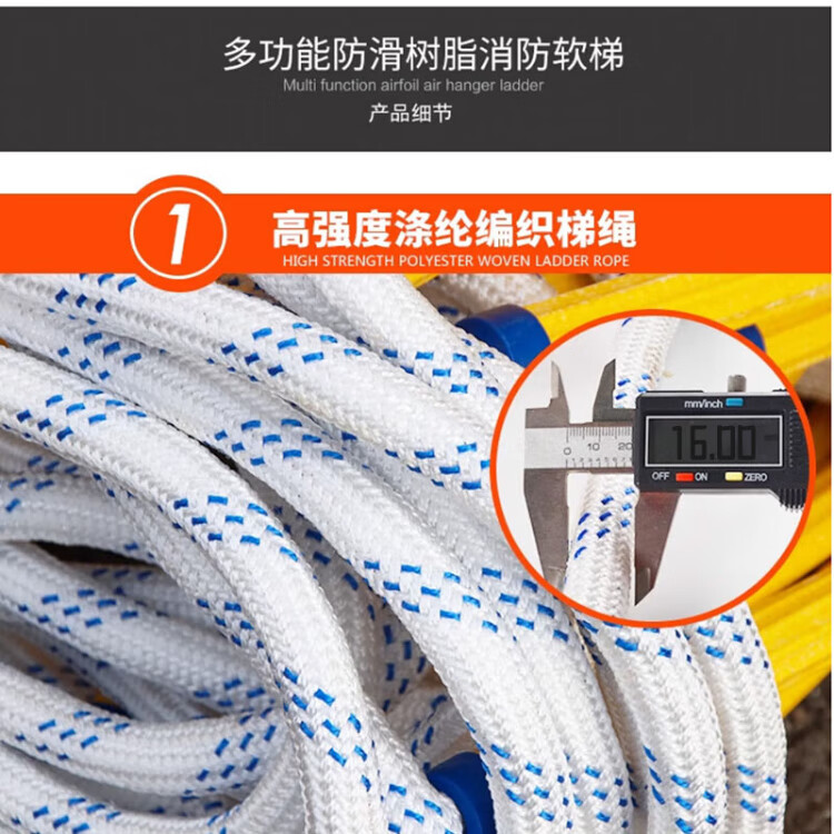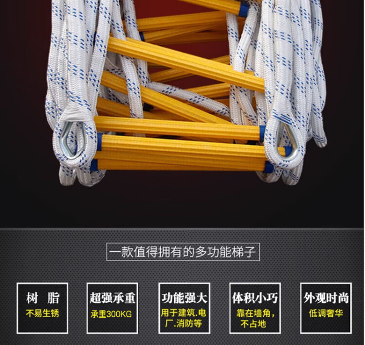 People's Safety Rope Ladder Escape Ladder Fire Escape Ladder Emergency Fire Rescue Training Home Self-Rescue Telescopic Folding Rope Ladder Polyester Resin Fire Ladder 5 Meters + Double Hooks + Screws