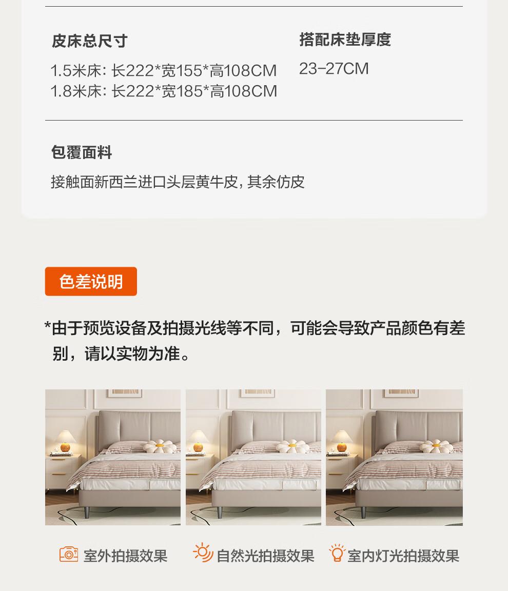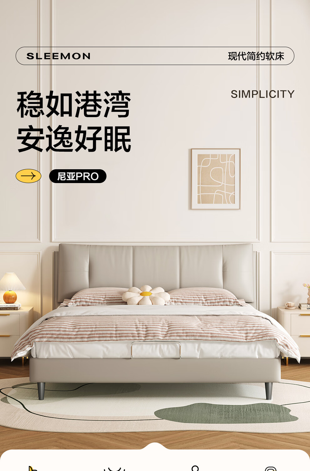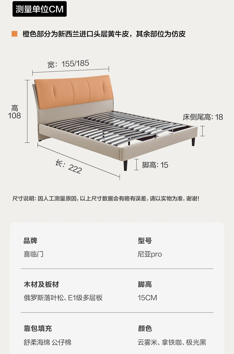 Xilinmen offline same style double leather bed Nia pro (meter) + white knight plus mattress 1.8*2 meters