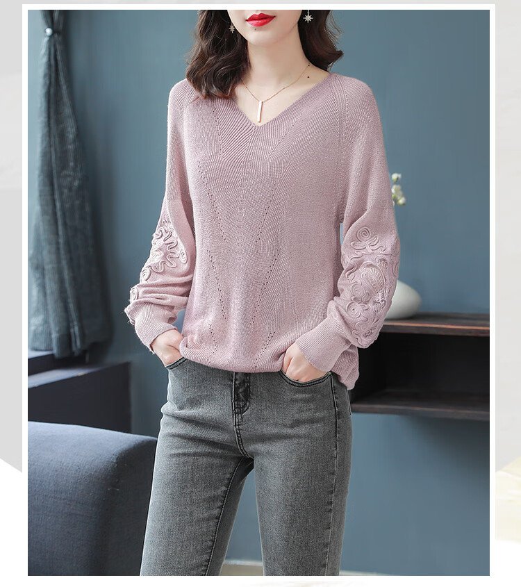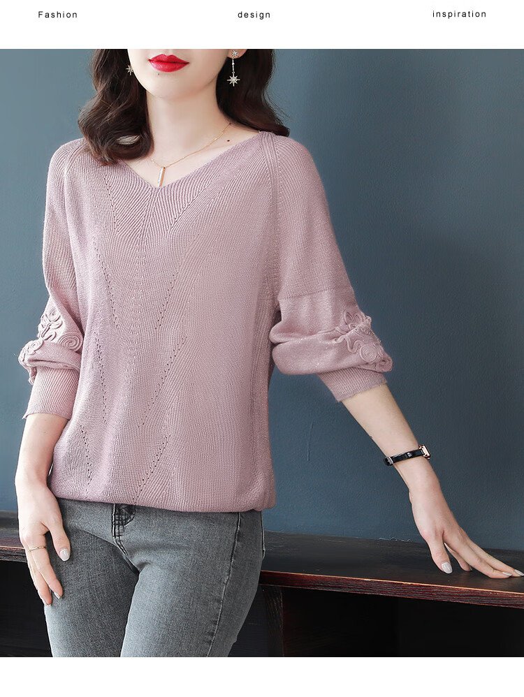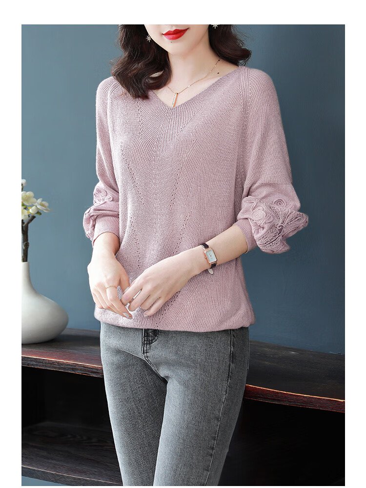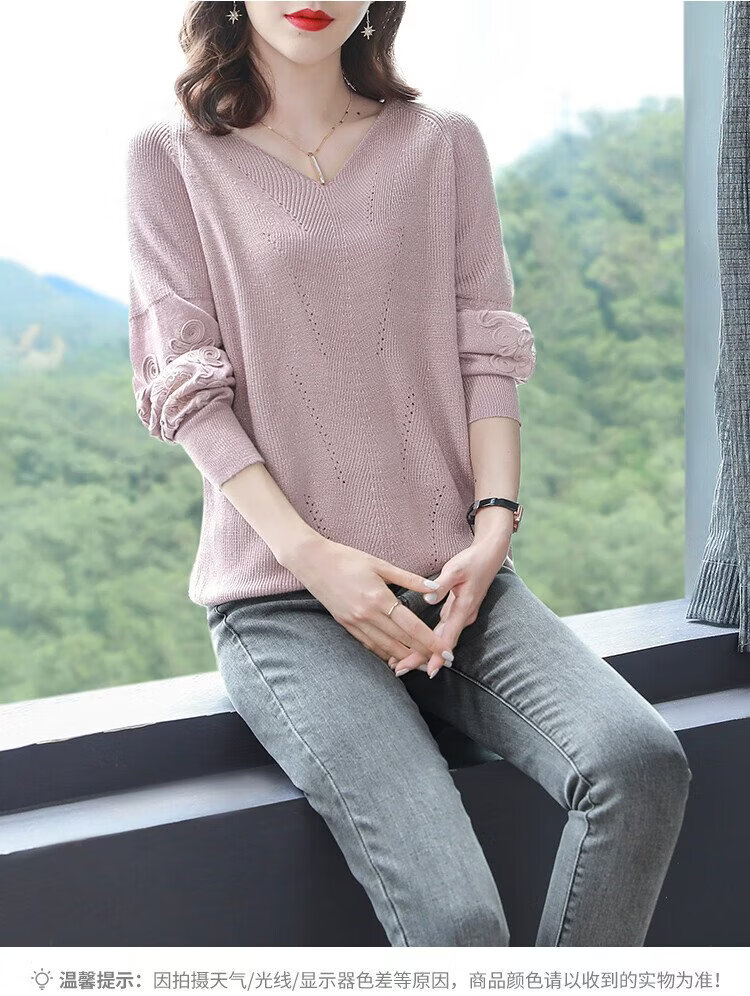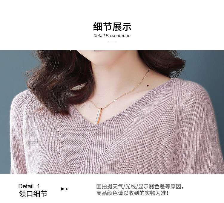 Sibaishe 2026 spring new women's fashionable gentle style simple slimming solid color V-neck sweater