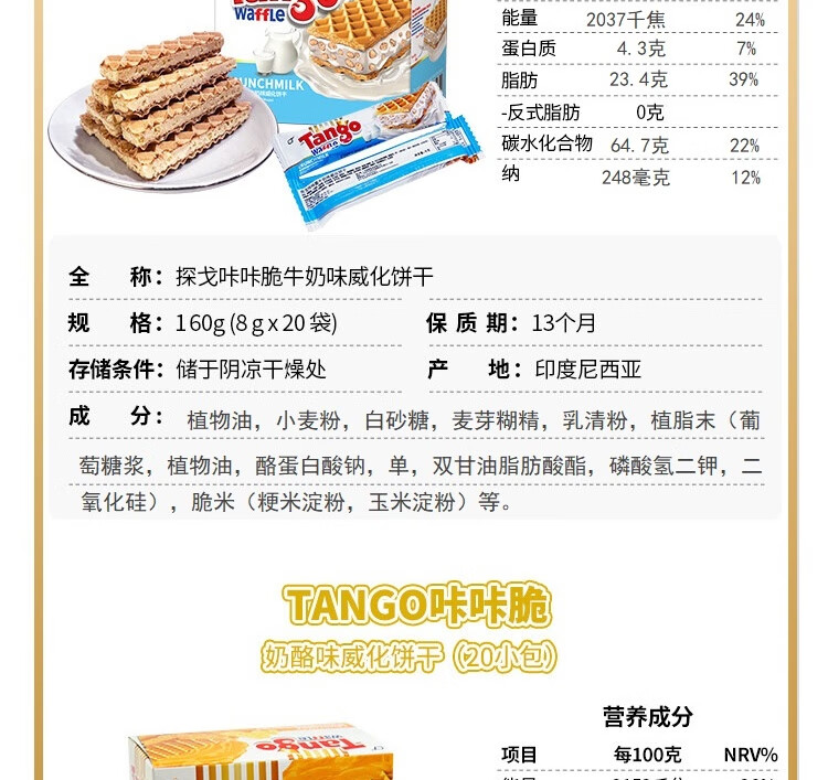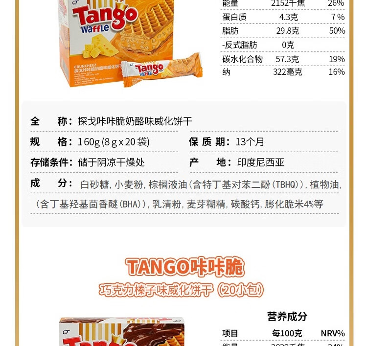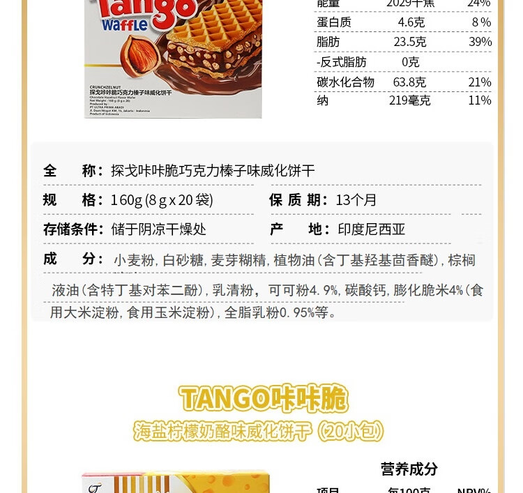 Tango Tango Kaka crisp chocolate hazelnut sandwich wafer biscuits 160g imported from Indonesia office snacks
