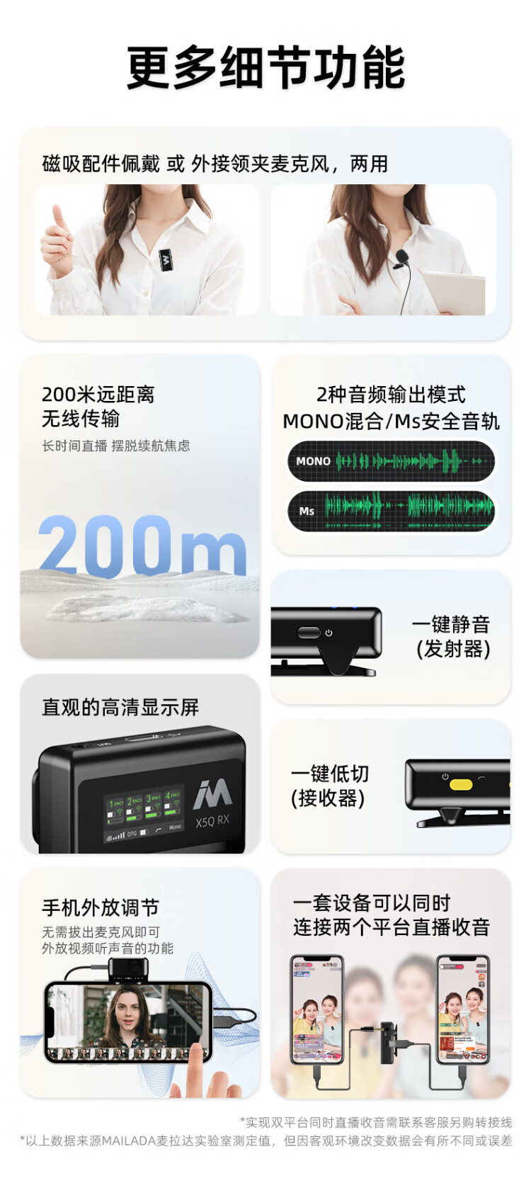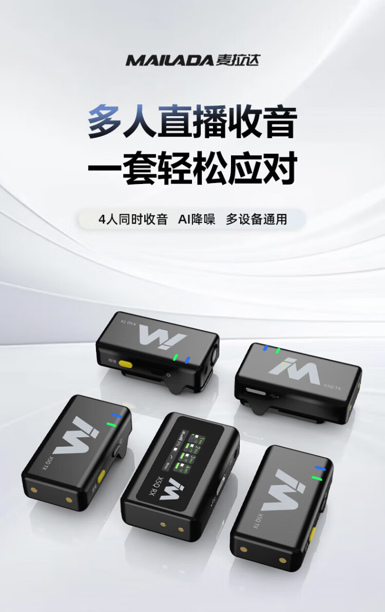 Mailada X5Q one-to-four wireless radio microphone live broadcast Little Bee microphone one-click noise reduction SLR radio microphone interview pickup