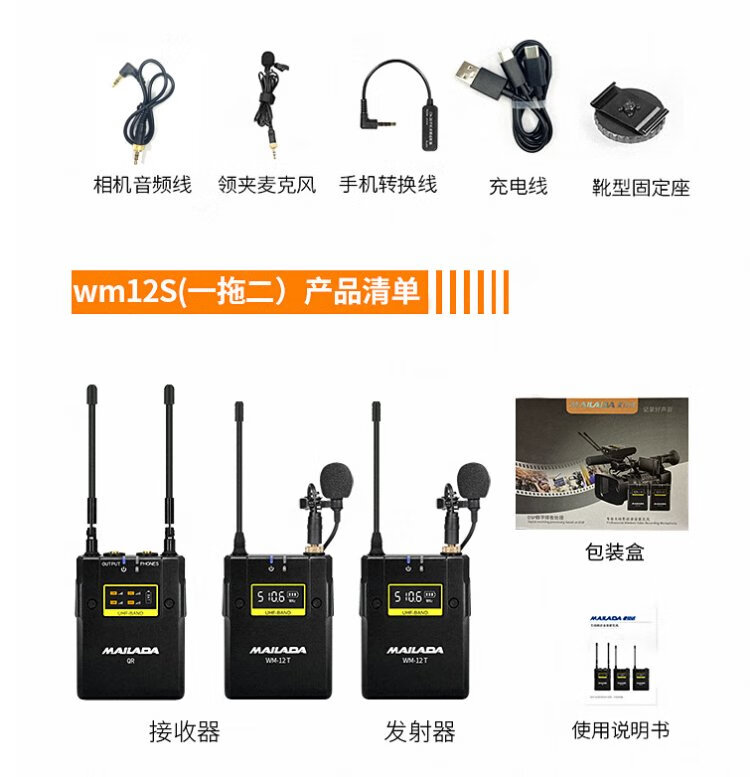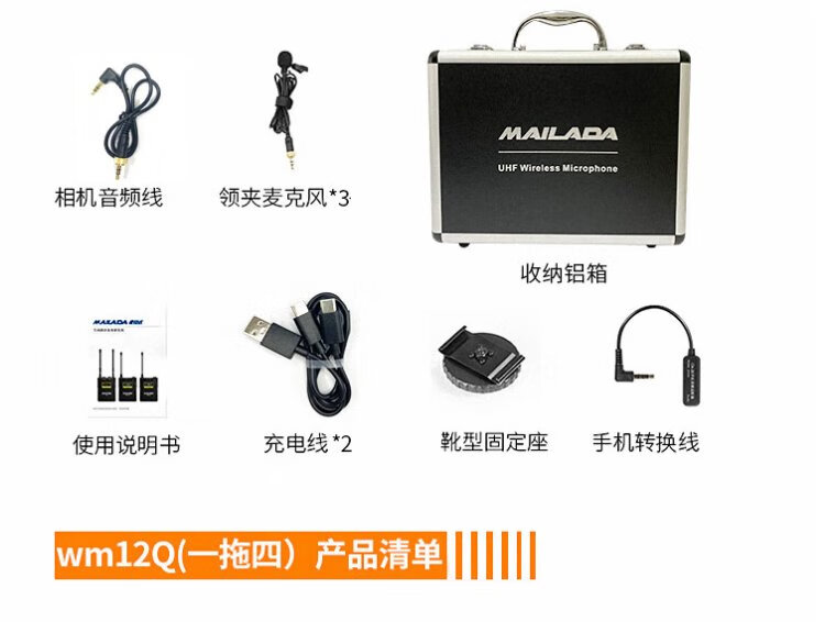 Mailada WM12P one-to-three wireless lavalier microphone Little Bee interview mobile phone microphone radio microphone live broadcast audio equipment SLR camera recording microphone wireless microphone