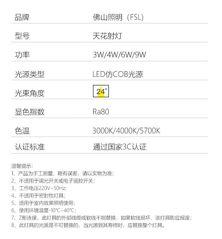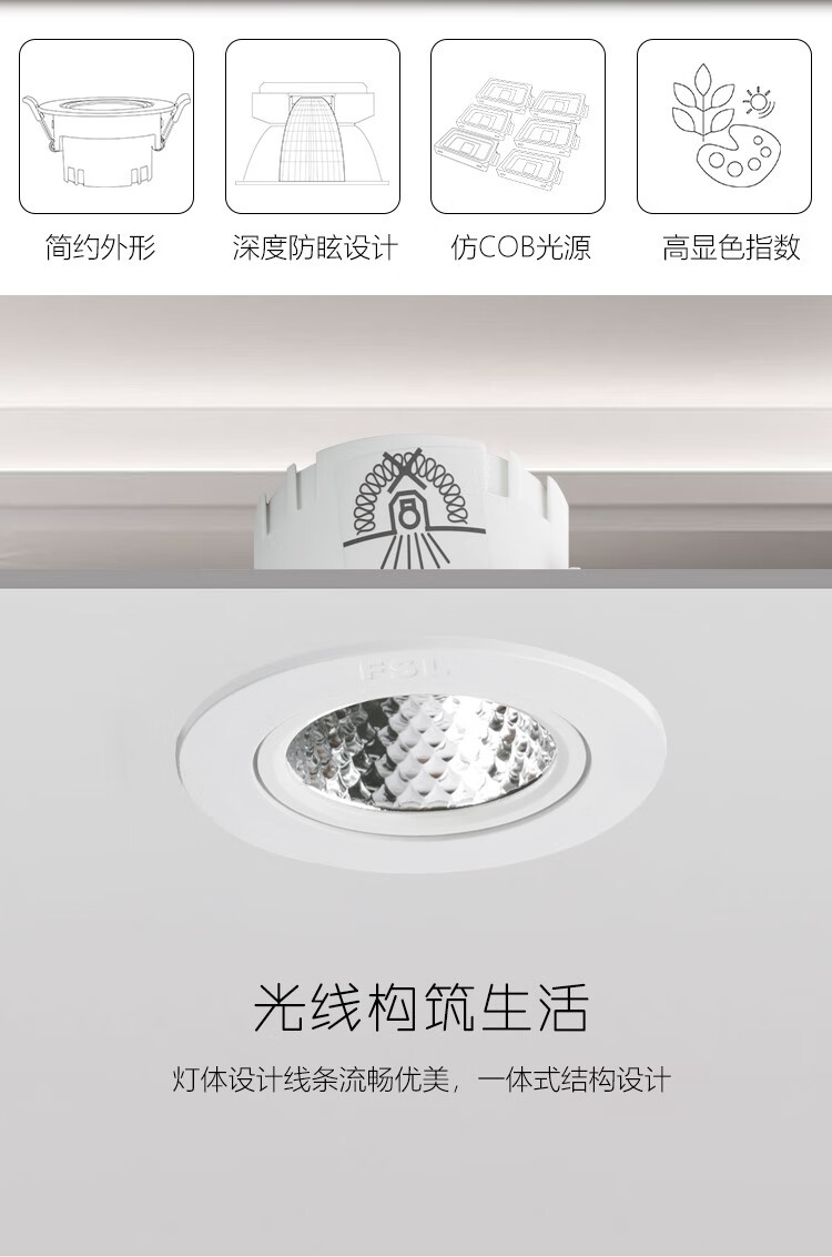 Foshan Lighting (FSL) LED anti-glare ceiling spotlight COB lamp bead angle adjustable background wall exhibition hall lighting 3W neutral light