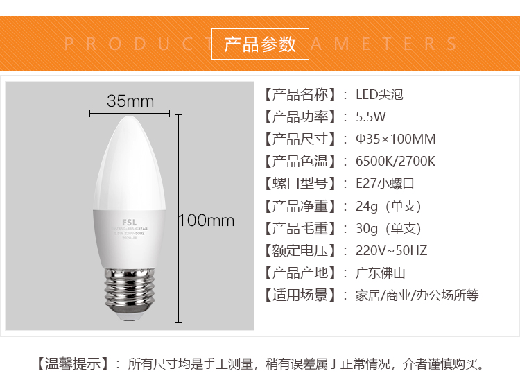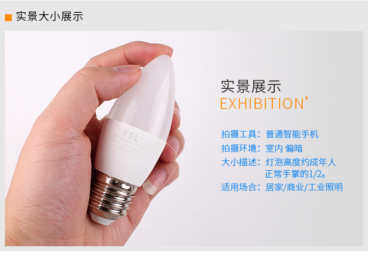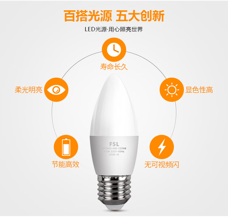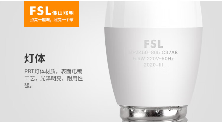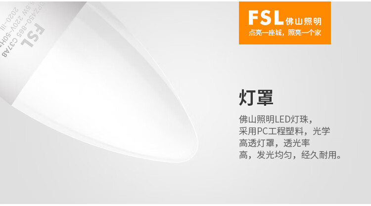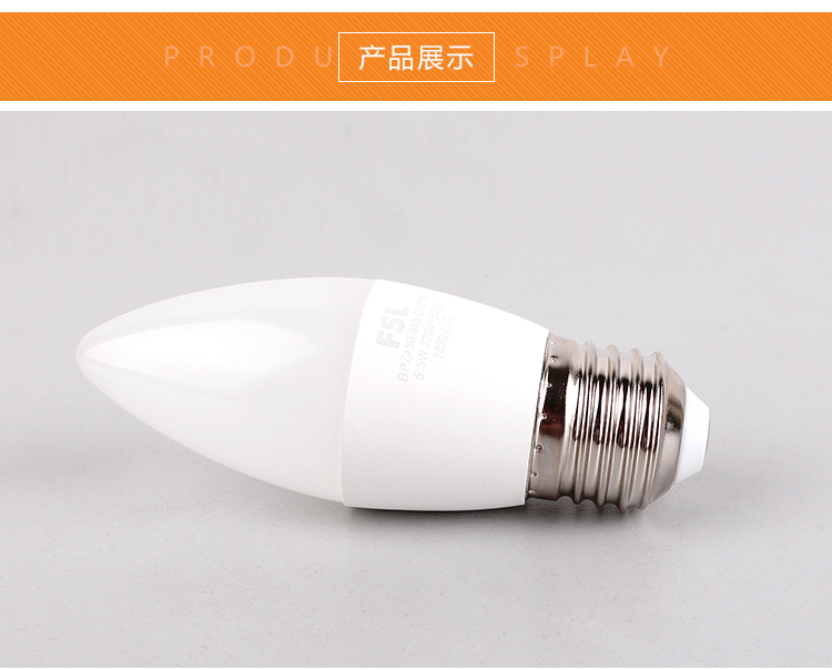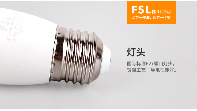 Foshan Lighting (FSL) LED bulb crystal lamp tip bulb chandelier wall lamp bulb E27 screw socket 5.5W yellow light 2700K