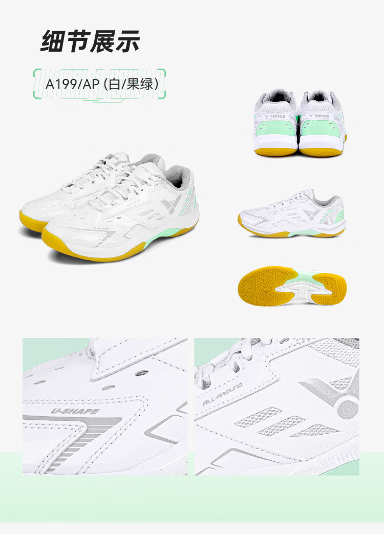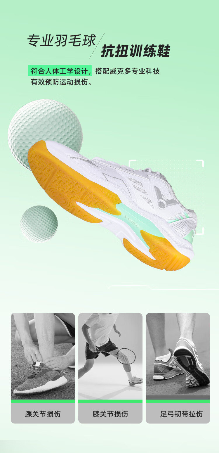 VICTOR Victory 2024 New Badminton Shoes Men's and Women's Same Style Sports Shoes A199 Ginkgo Green 42