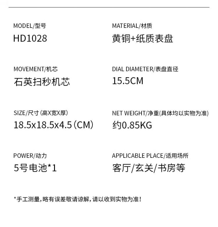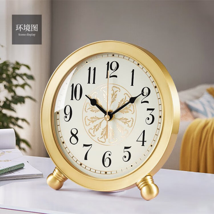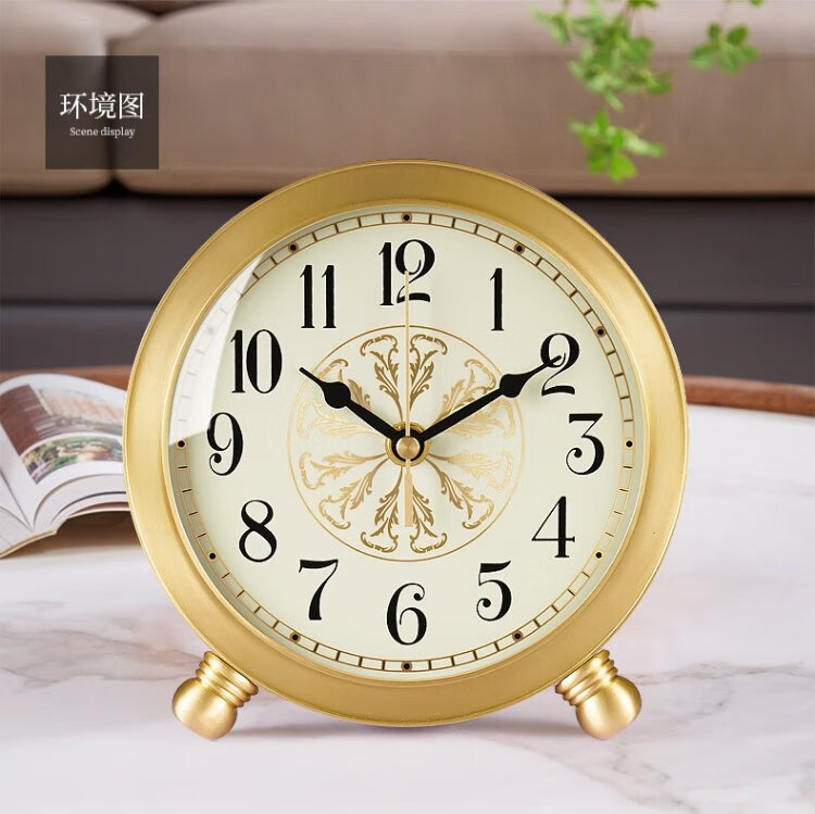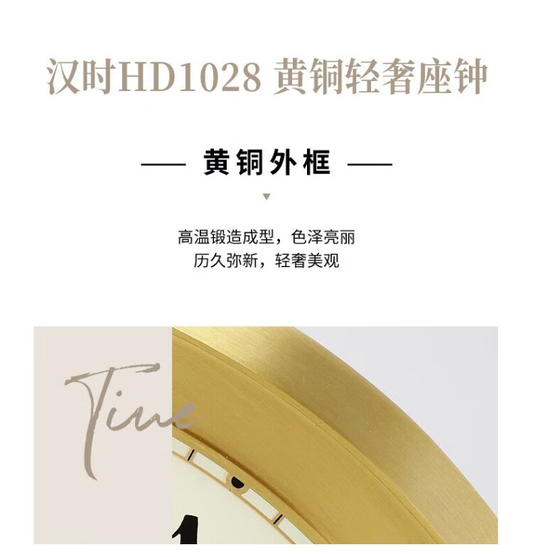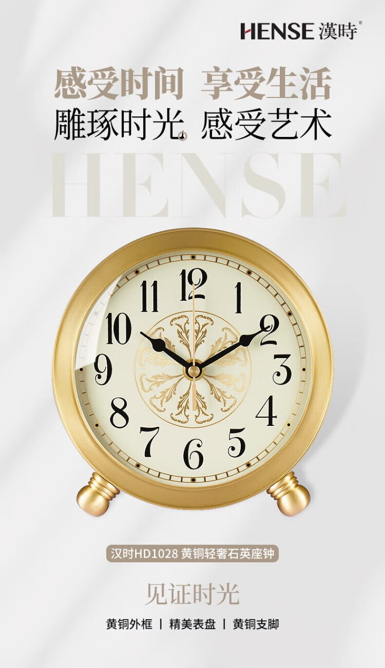 Hanshi (Hense) desk clock living room modern light luxury brass clock creative high-end desktop decoration clock HD1028 full digital dial