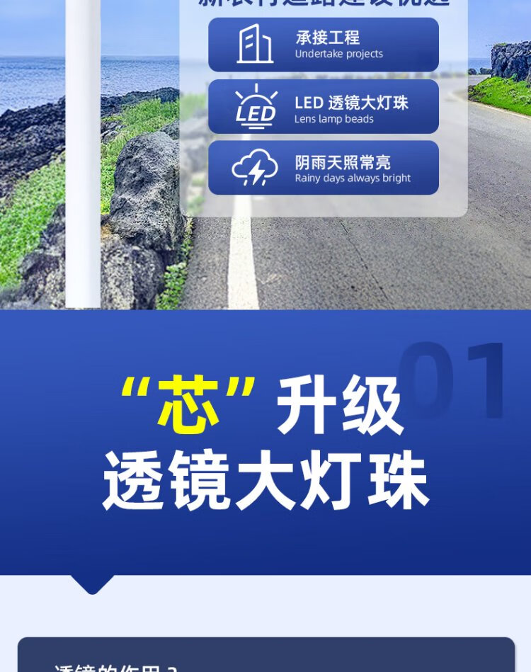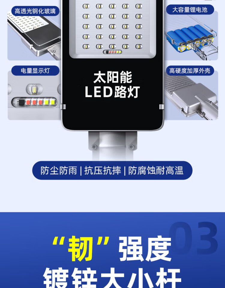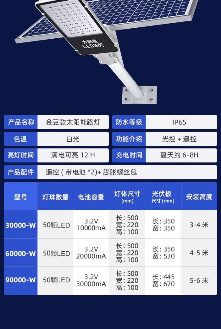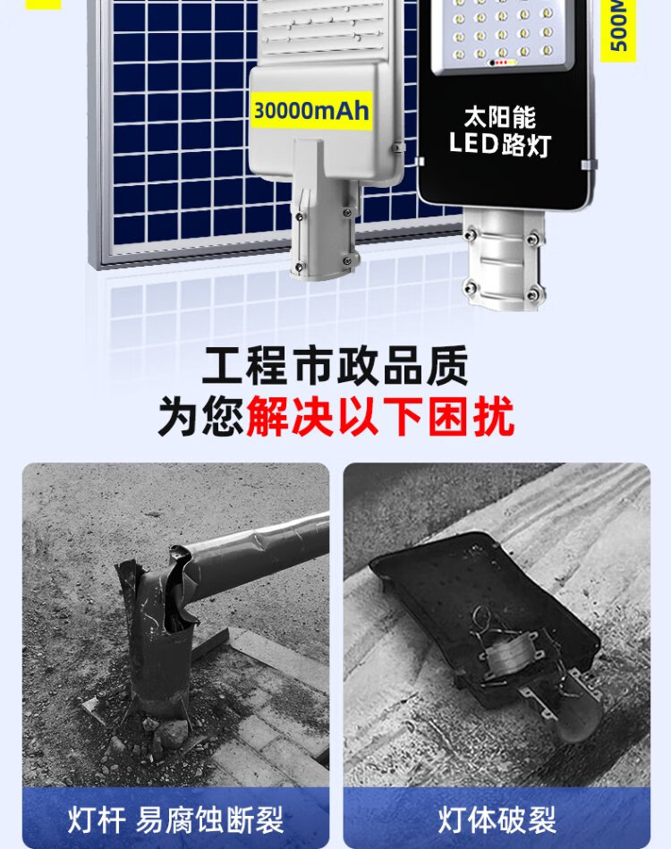 Deyan Solar Street Light Outdoor Lighting Waterproof Outdoor Light Breeding Headlight Split Street Light High Power Street Light Golden Bean Model 30000-W
