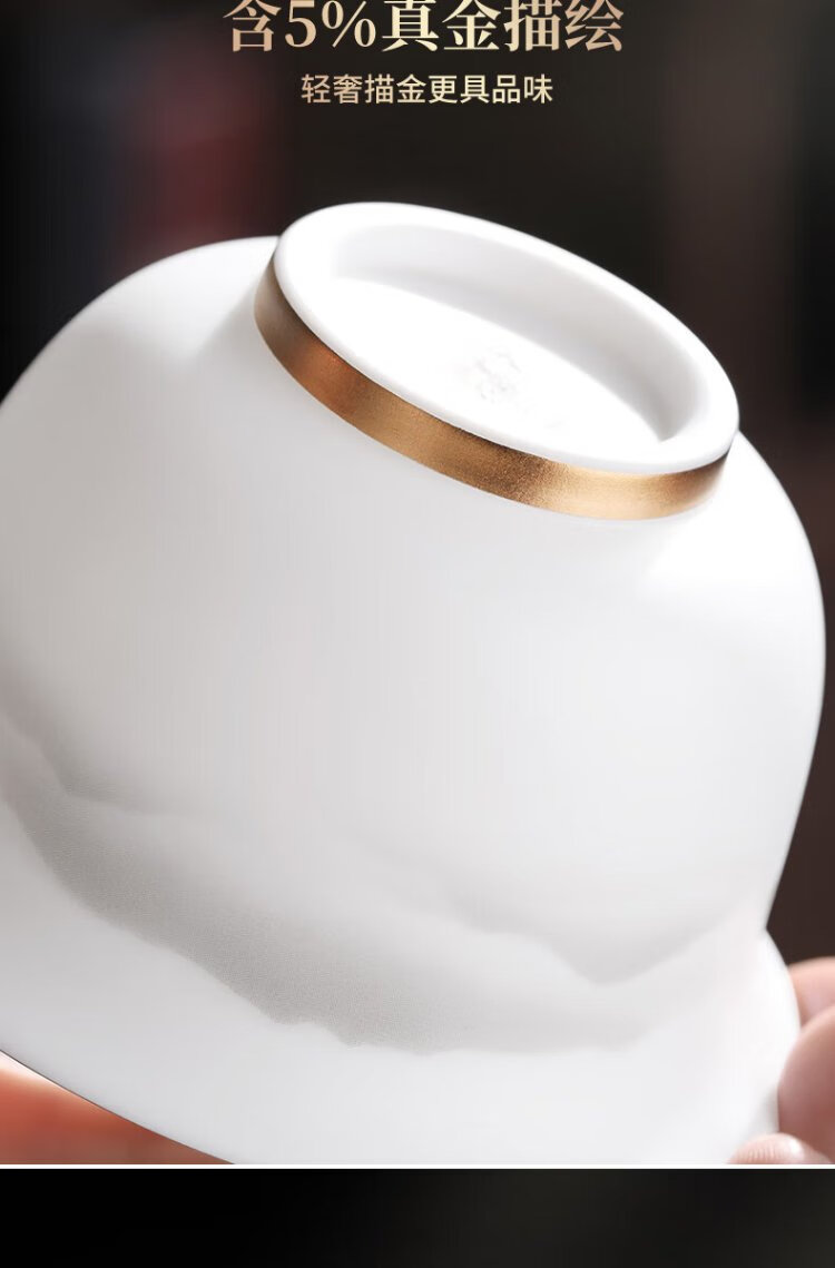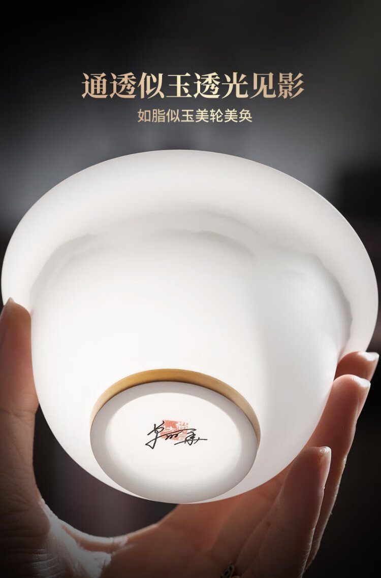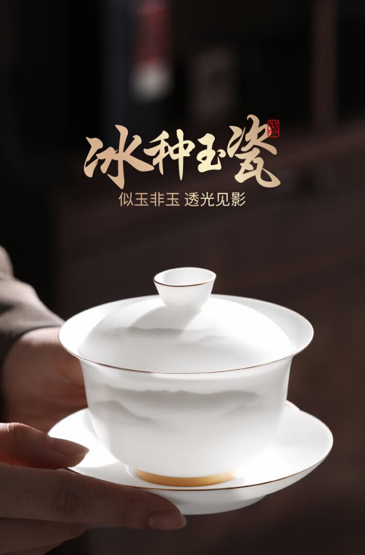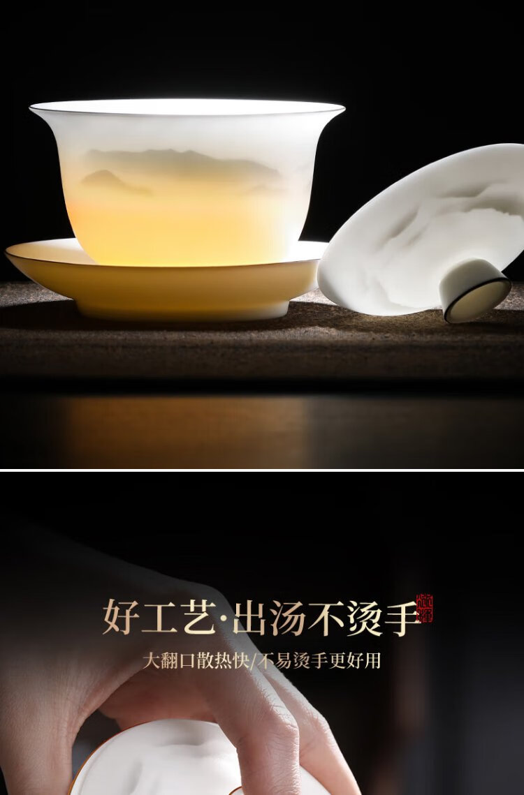 Not clumsy teacher Shan Lihua mutton fat jade Sancai covered bowl tea set cultural and creative tea bowl white porcelain tea cup simple Zhaoxia Ruyi covered bowl