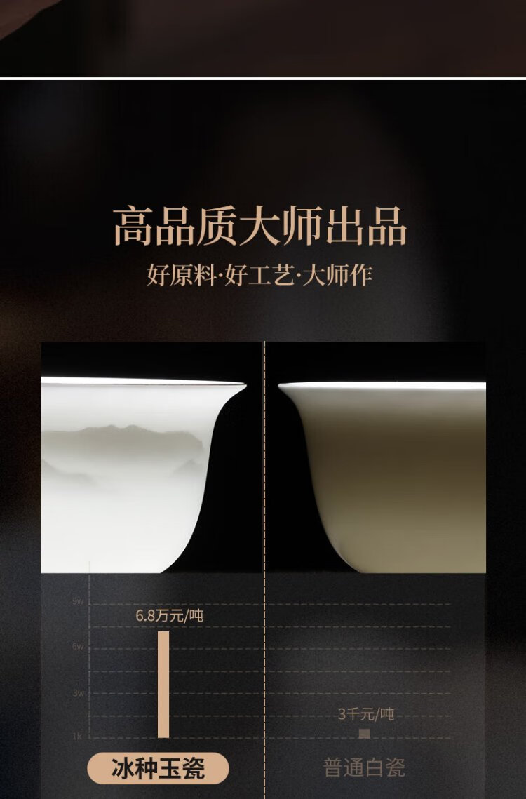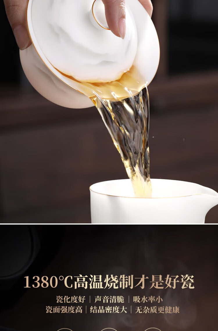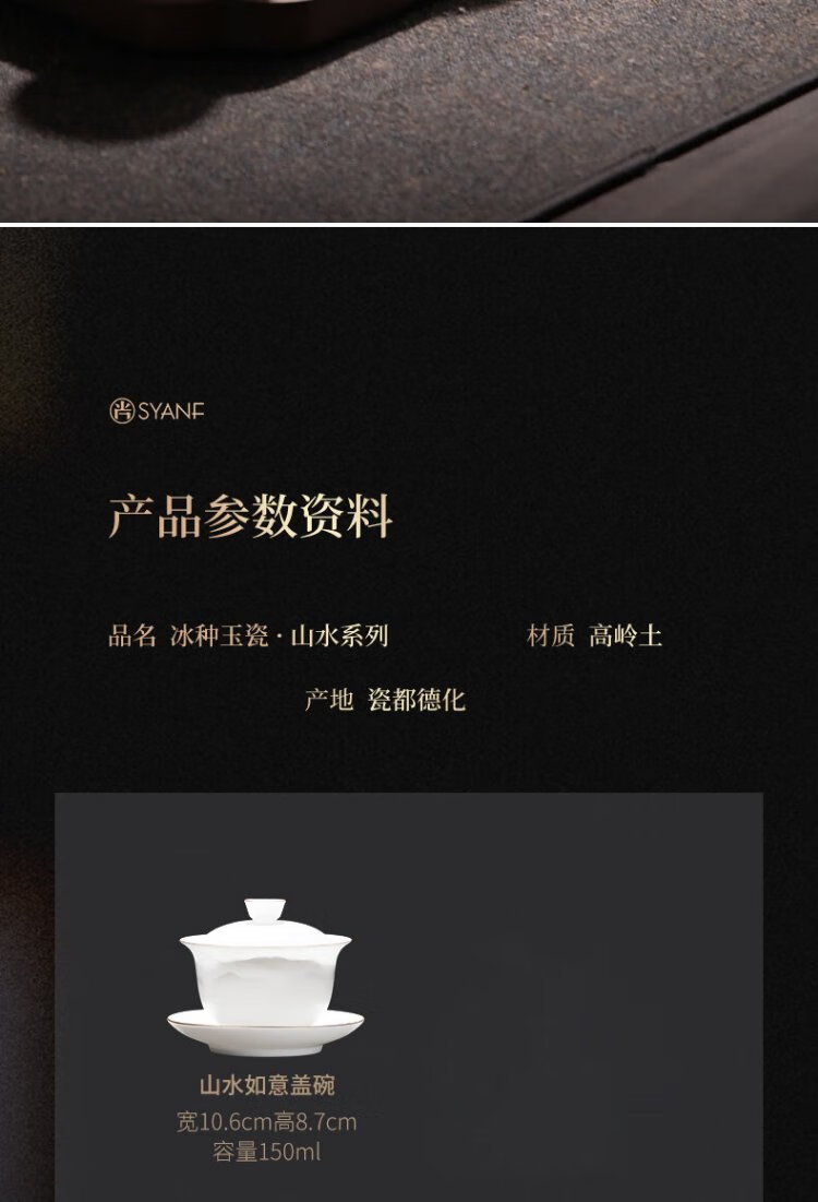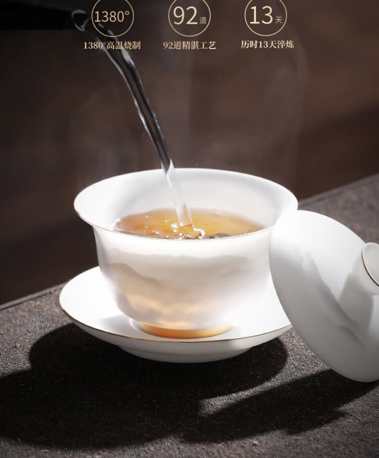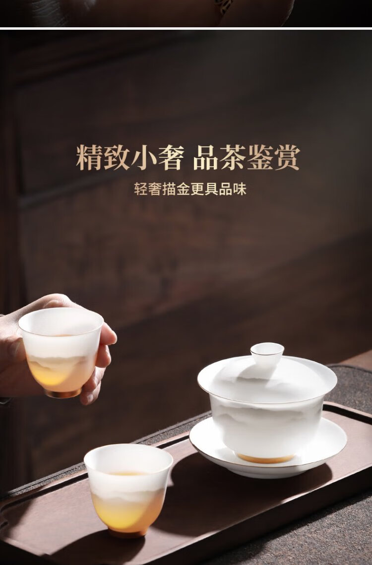 Not clumsy teacher Shan Lihua mutton fat jade Sancai covered bowl tea set cultural and creative tea bowl white porcelain tea cup simple Zhaoxia Ruyi covered bowl