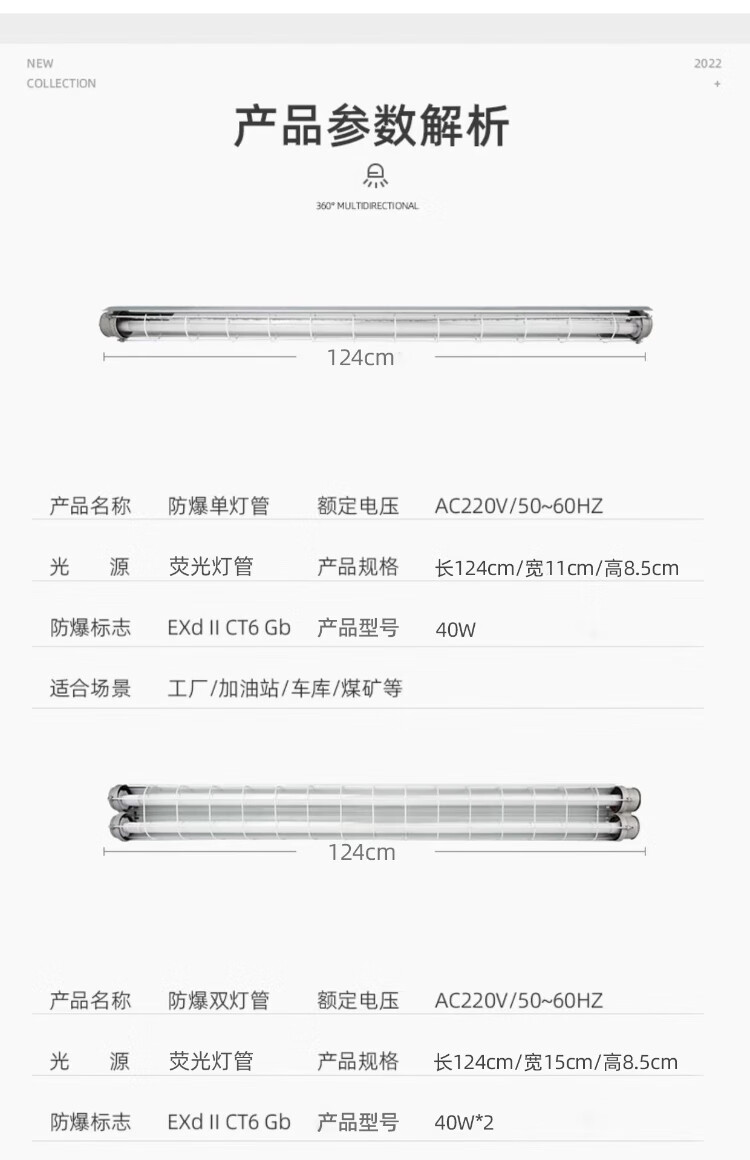 Deyan explosion-proof fluorescent lamp factory workshop lighting LED lamp explosion-proof lamp white light-1.2m double tube-40W*2
