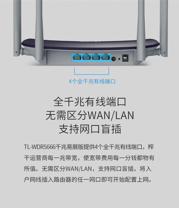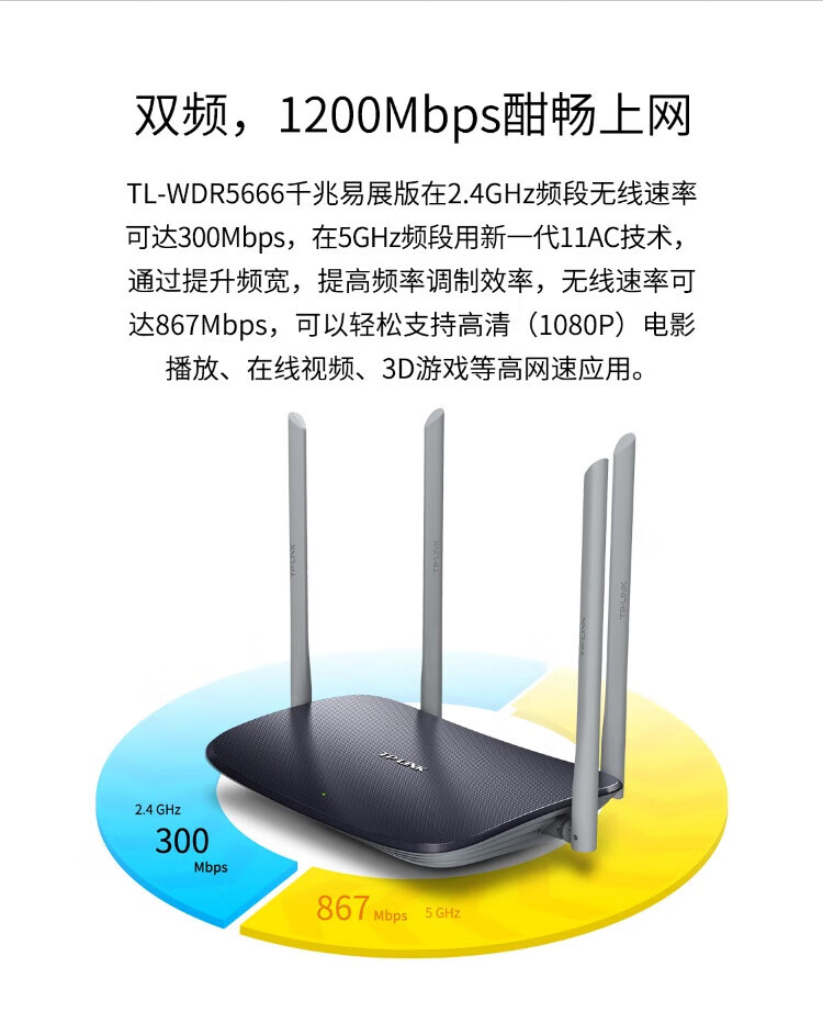TP-LINK Gigabit dual-band 5G high-speed wireless router 1200M TL-WDR5666 Gigabit Easy Exhibition Edition connection number 4 full Gigabit wired ports