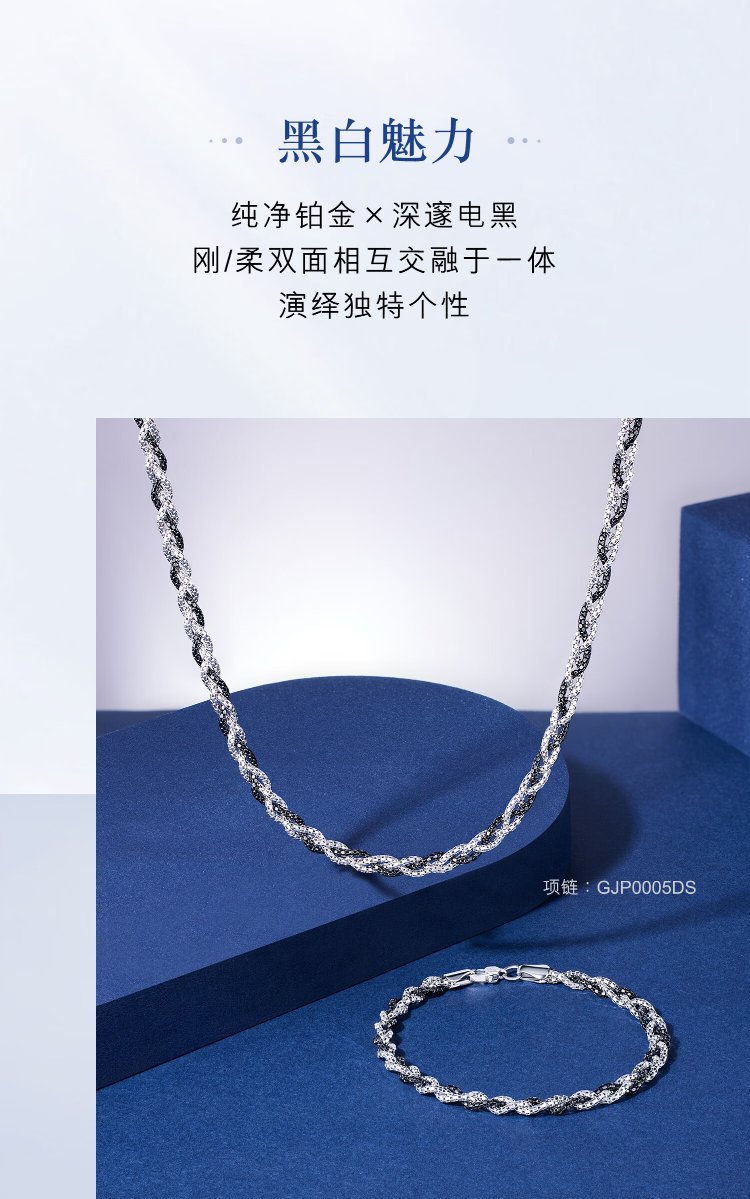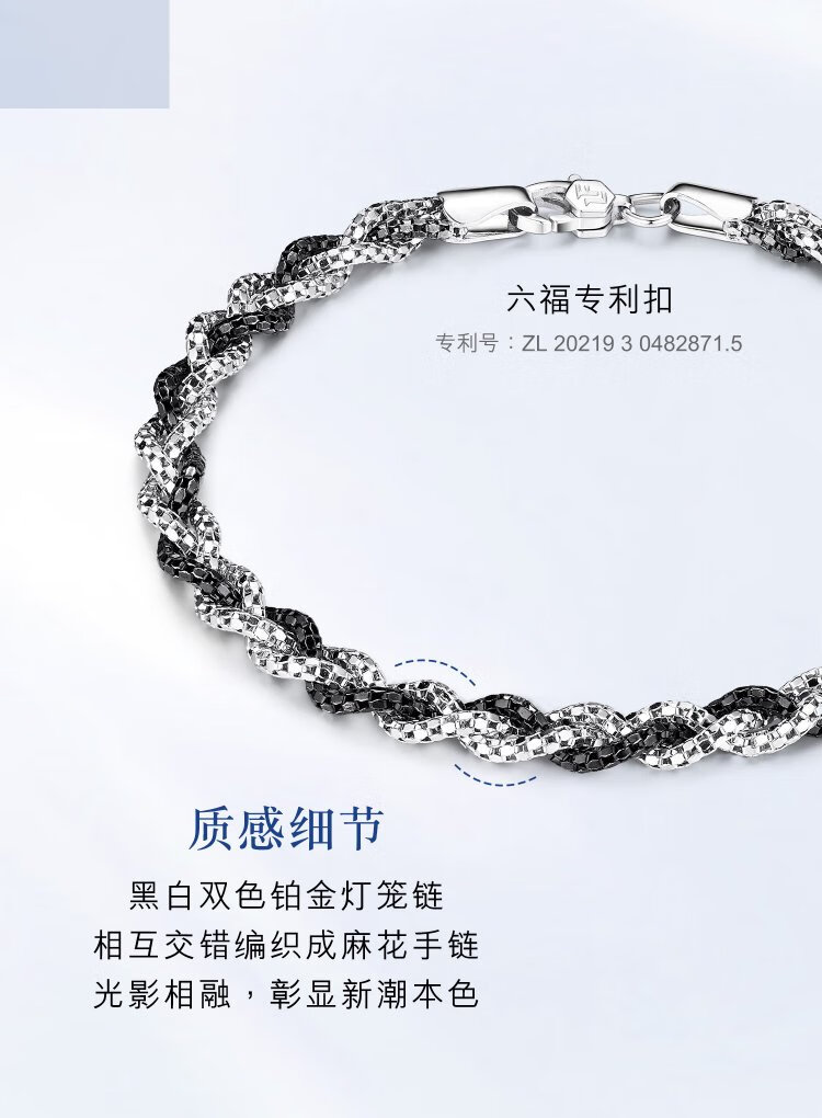 Lukfook Jewelry Platinum Bracelet Electric Black Two-tone Platinum 950 Twist Chain Price GJP0008DS Approximately 5.82 grams