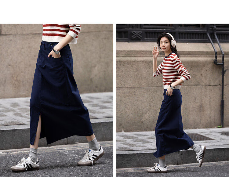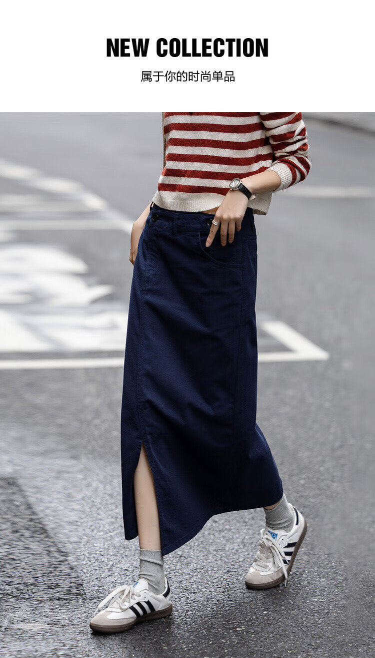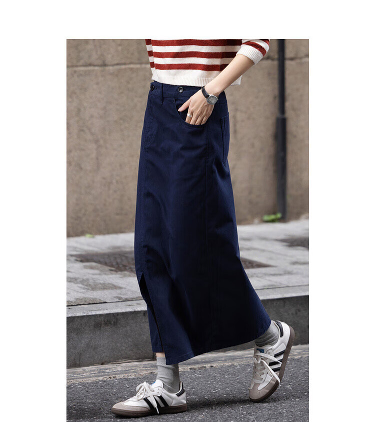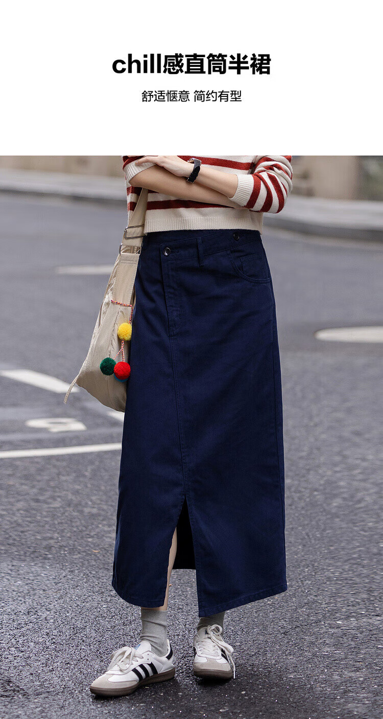 Demana pure cotton comfort zone spring Korean high street asymmetrical placket straight leg hidden meat women's mid-length denim skirt