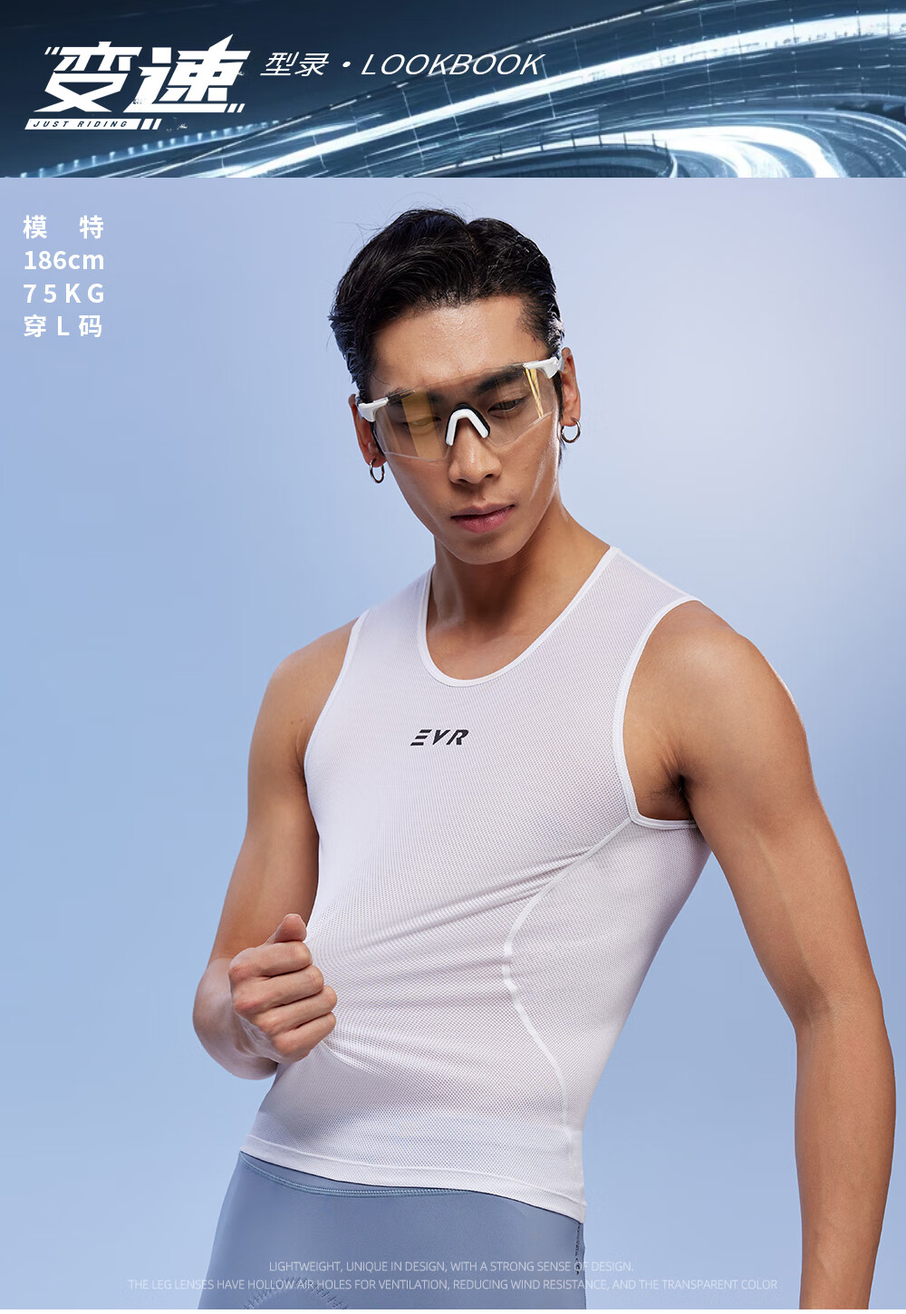 EVR cycling sweatshirt men's vest close-fitting high-elastic thin dense mesh breathable fabric white M