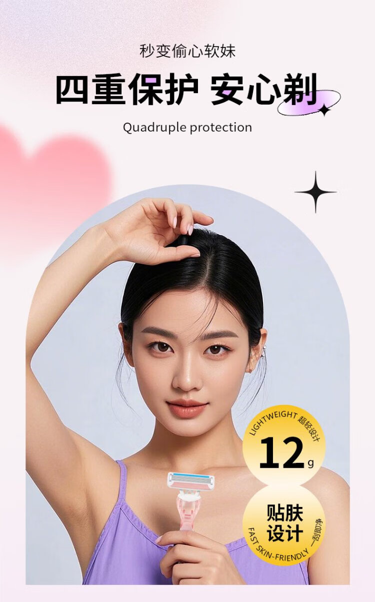 Haifeino shaver women's hair removal knife manual shaver private armpit hair shaver manual shaver long 1 piece