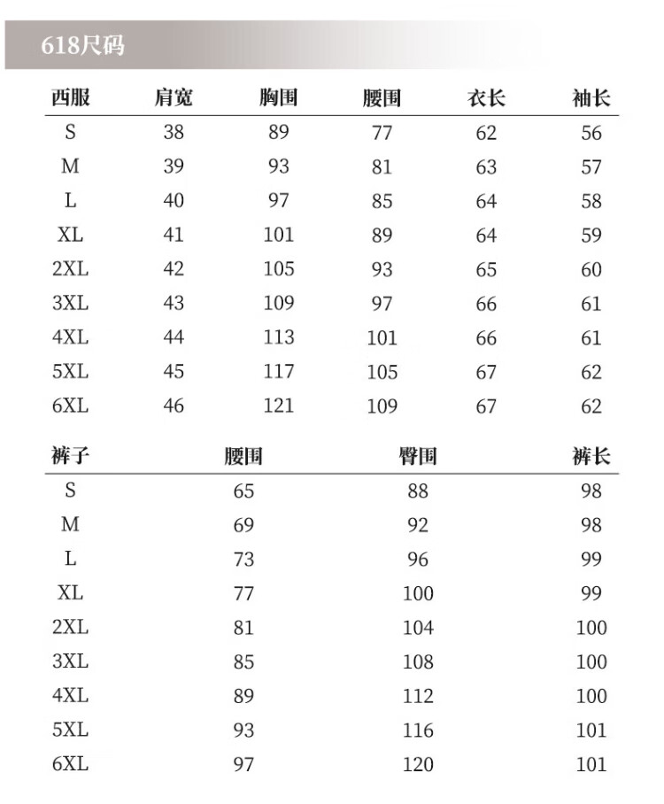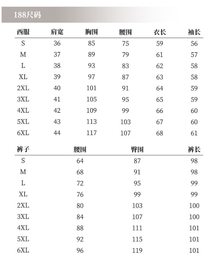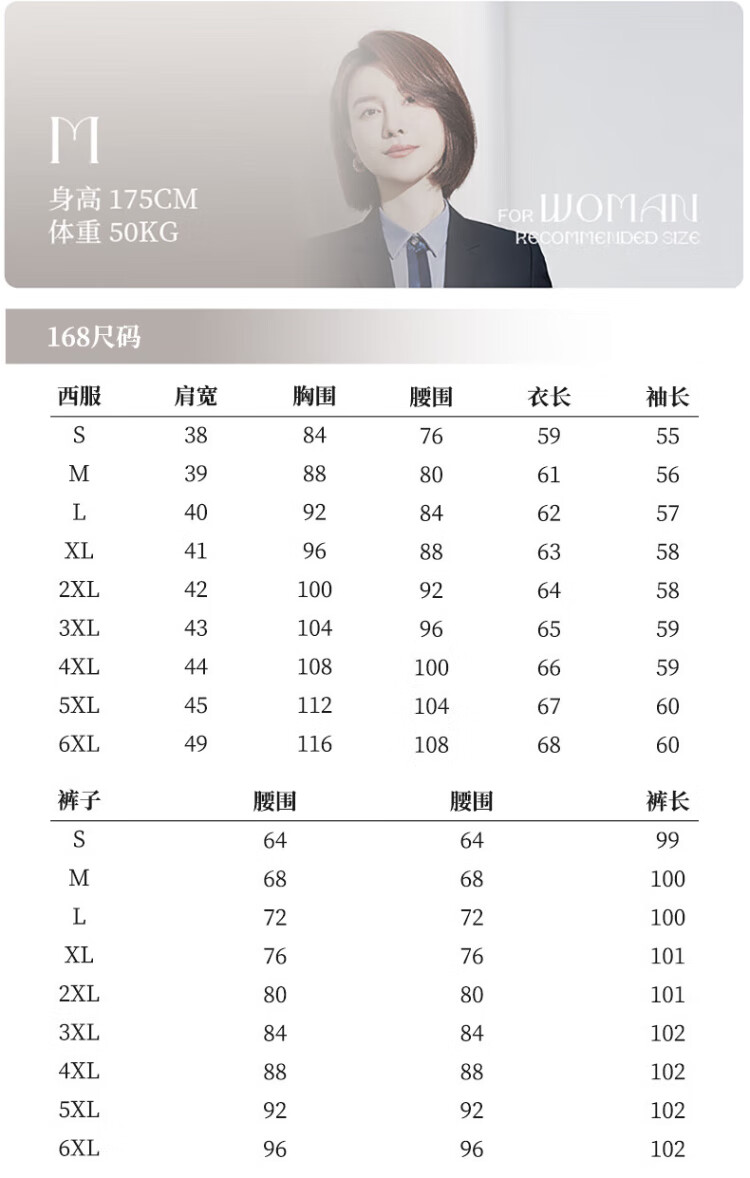 China (cm) 160-165/84-86 165-170 / 88-90 167-172 / 92-96 168-173 / 98-102 170-176 / 106-110