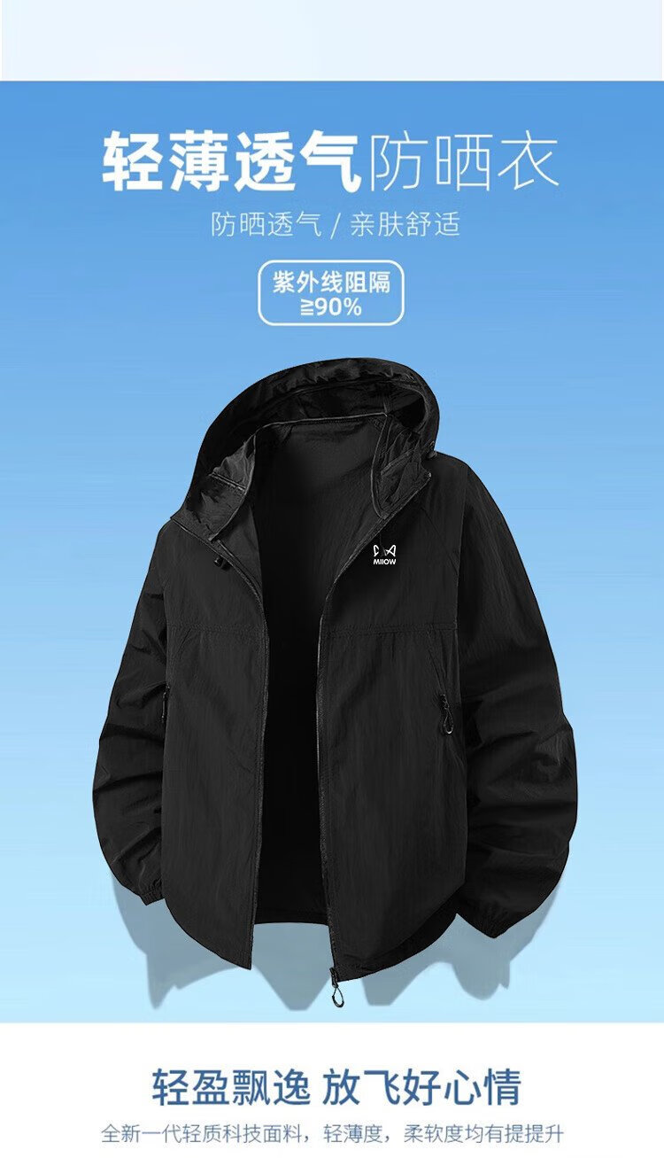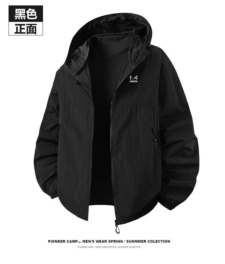 Catman Sun Protection Jacket Men's Summer Lightweight Casual Skin Jacket Hooded Ice-Feeling Breathable Fishing Suit Dark Gray XL
