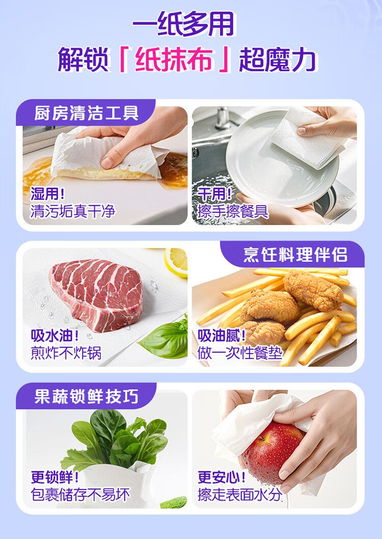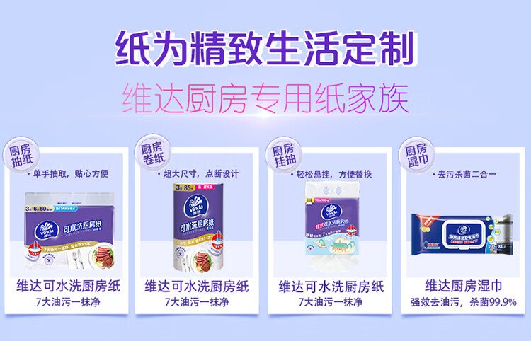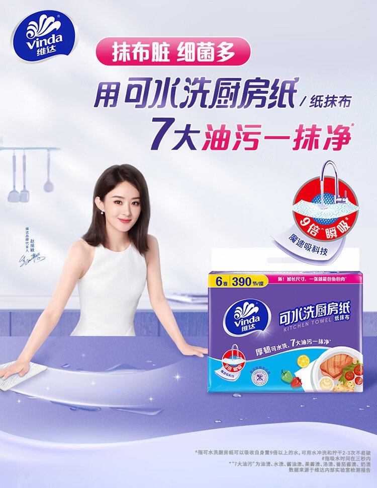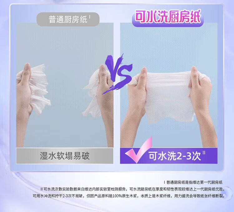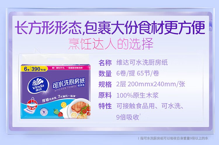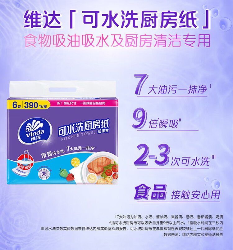 Vinda kitchen paper washable roll paper 65 sections * 6 rolls kitchen paper food-contact grade oil-absorbent kitchen cleaning