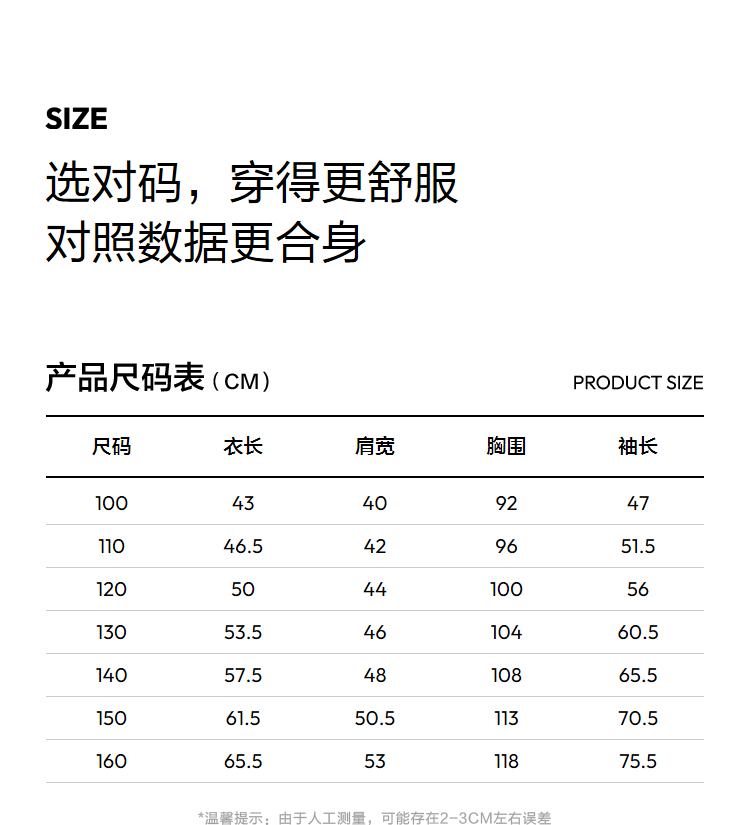 China (cm) 160-165/84-86 165-170 / 88-90 167-172 / 92-96 168-173 / 98-102 170-176 / 106-110