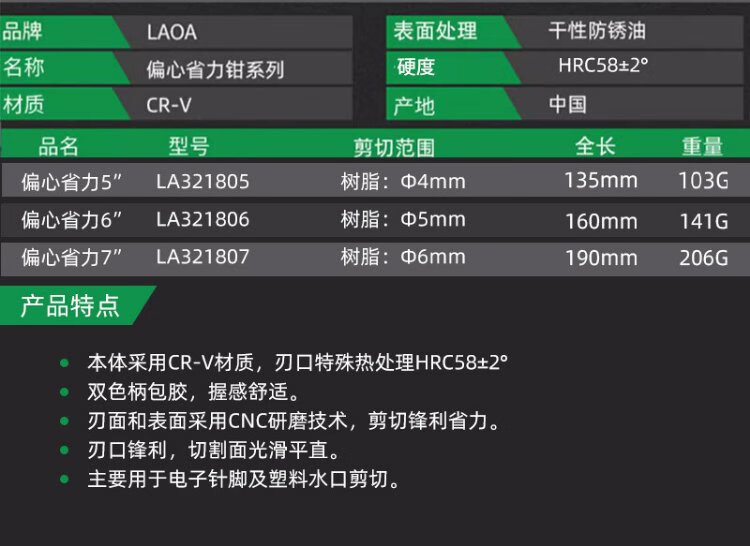 LAOA old A water mouth pliers labor-saving oblique nose diagonal nose pliers plastic model shearing pliers 6 inches LA321806