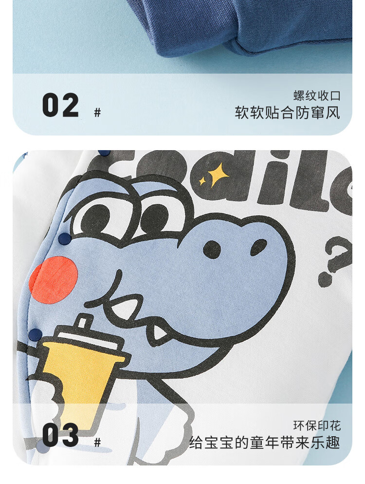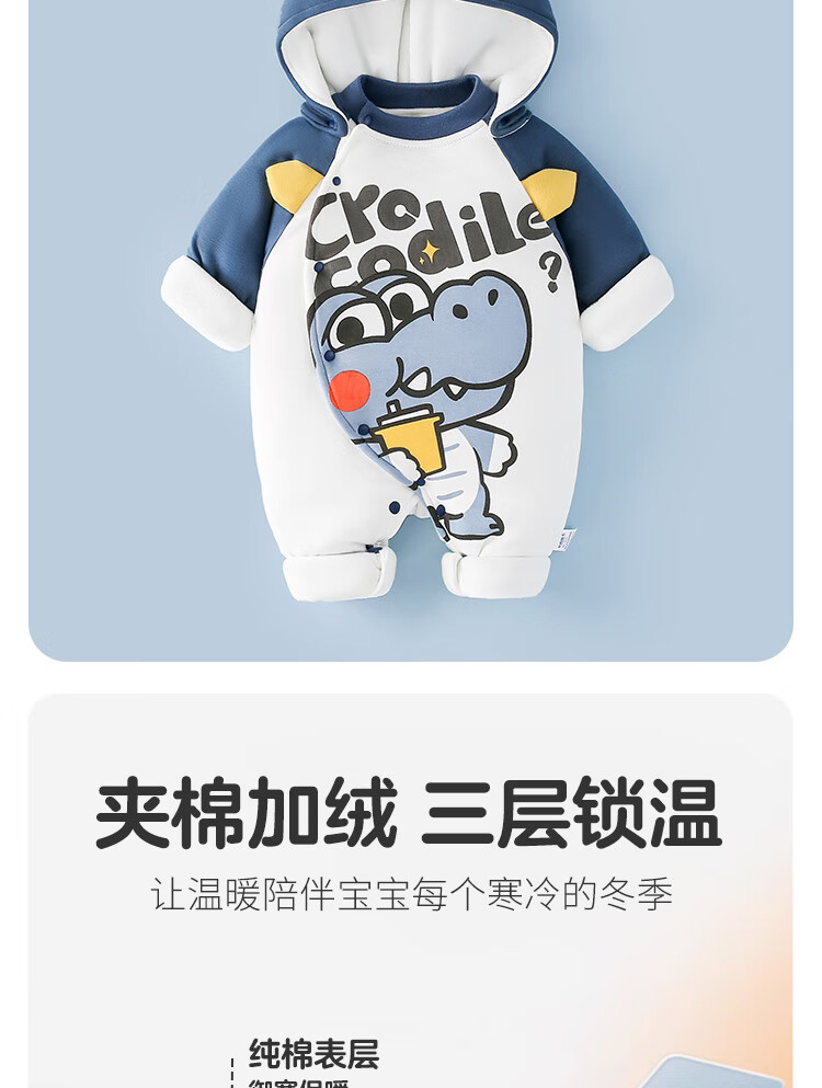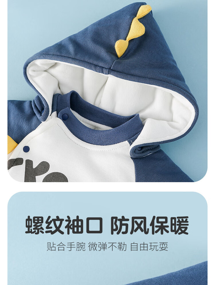 Duoxiluka infant cotton clothing autumn and winter style baby plus velvet one-piece clothespin cotton warm and thickened Molan dinosaur 80
