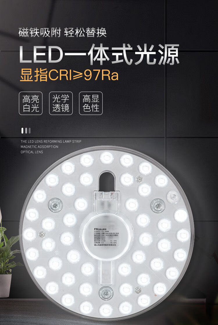FSL Foshan Lighting LED ceiling lamp lamp panel light source module wick 220V 22W white light Muguang 97 high display