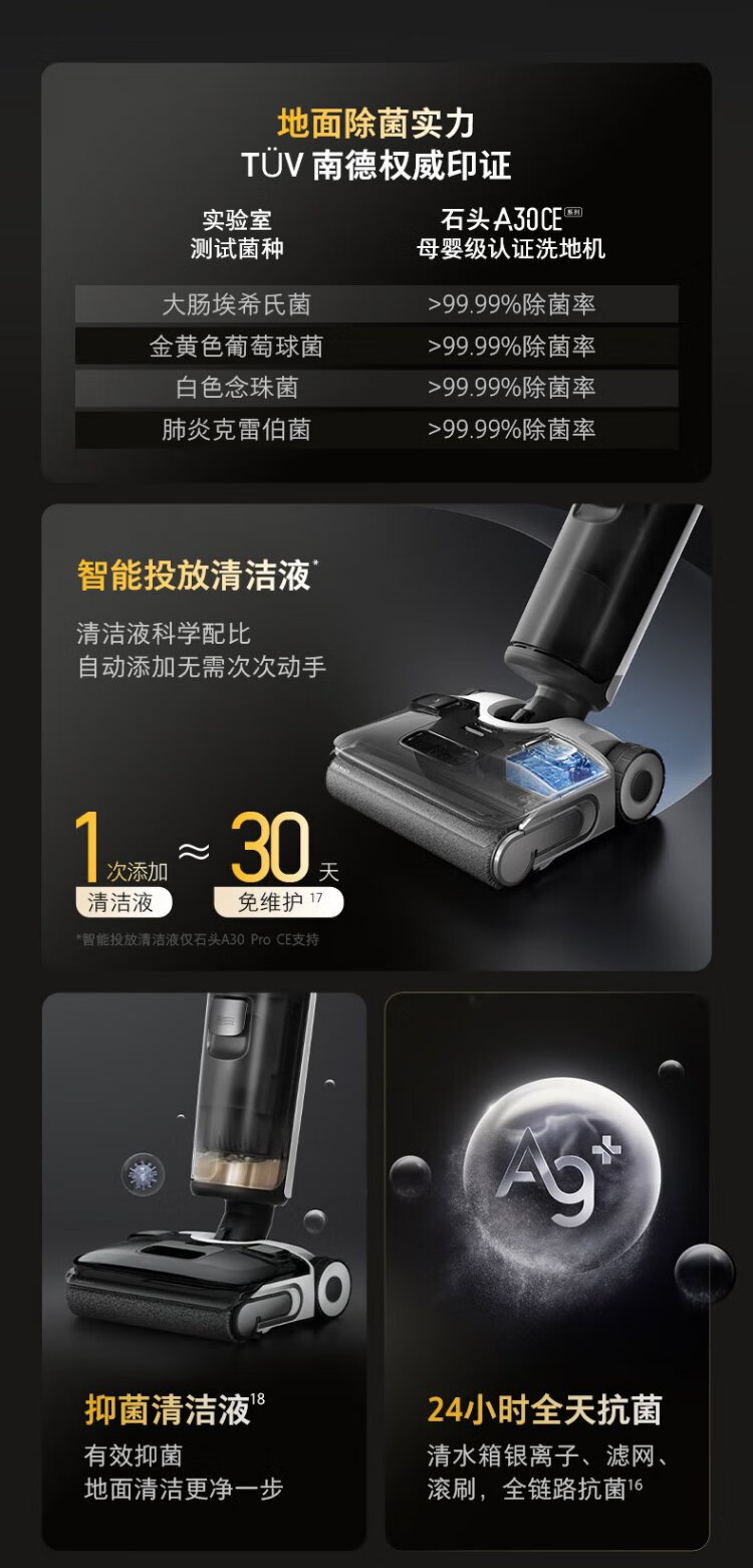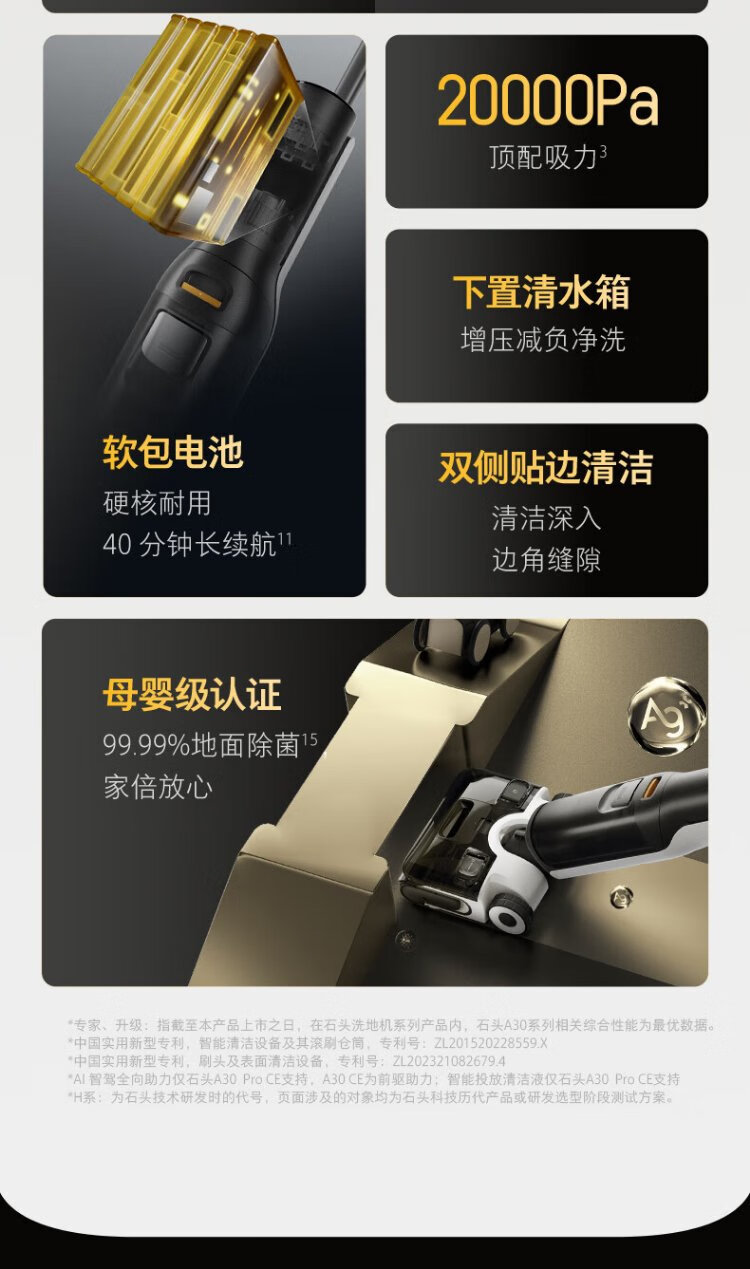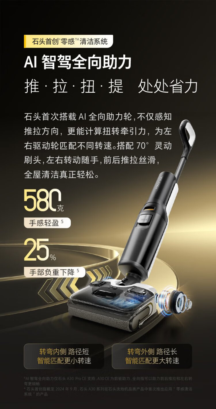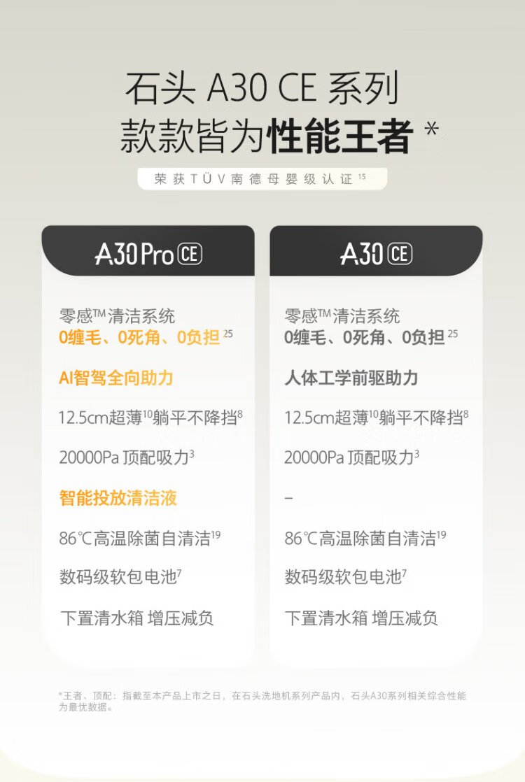 Roborock A30ProCE floor scrubber AI omnidirectional assist 0 tangled hair ultra-thin lying flat high temperature sterilization automatic cleaning suction washing and mopping all-in-one national subsidy A30ProTurbo same series