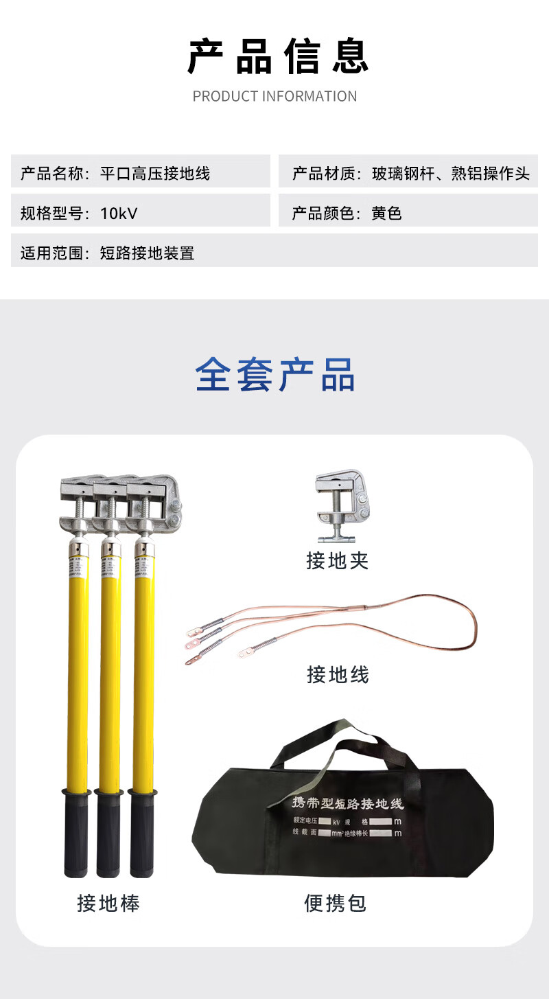 科启 10KV 高压接地线 配电房 25平方国标线 电工接地棒绝缘棒令克棒平口 0.5米棒+线长1米*3根+5米主线
