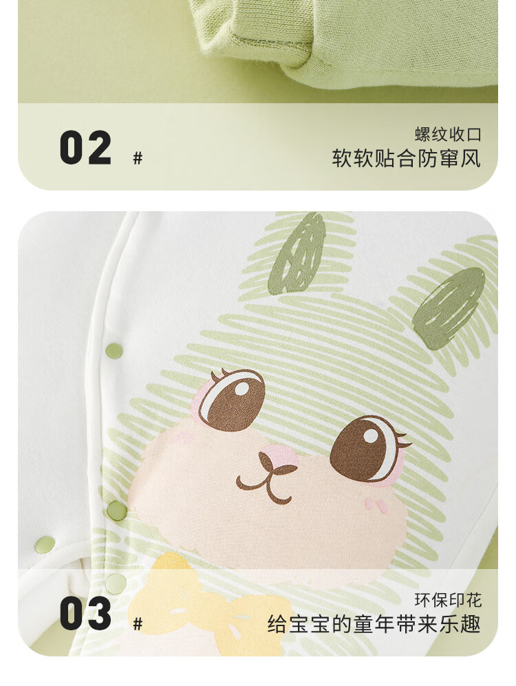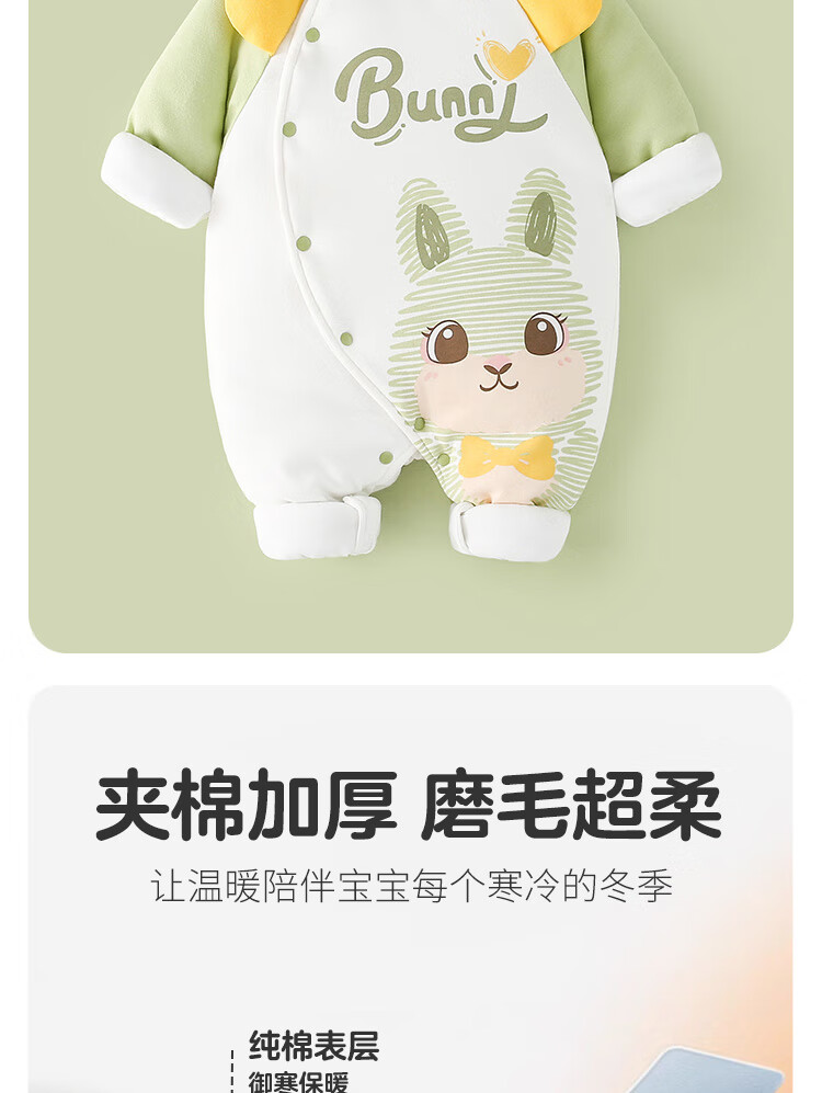 Duoxiluka baby jumpsuit autumn and winter quilted warm cotton clothes thickened cotton clothes for outdoor wear light green striped rabbit 66