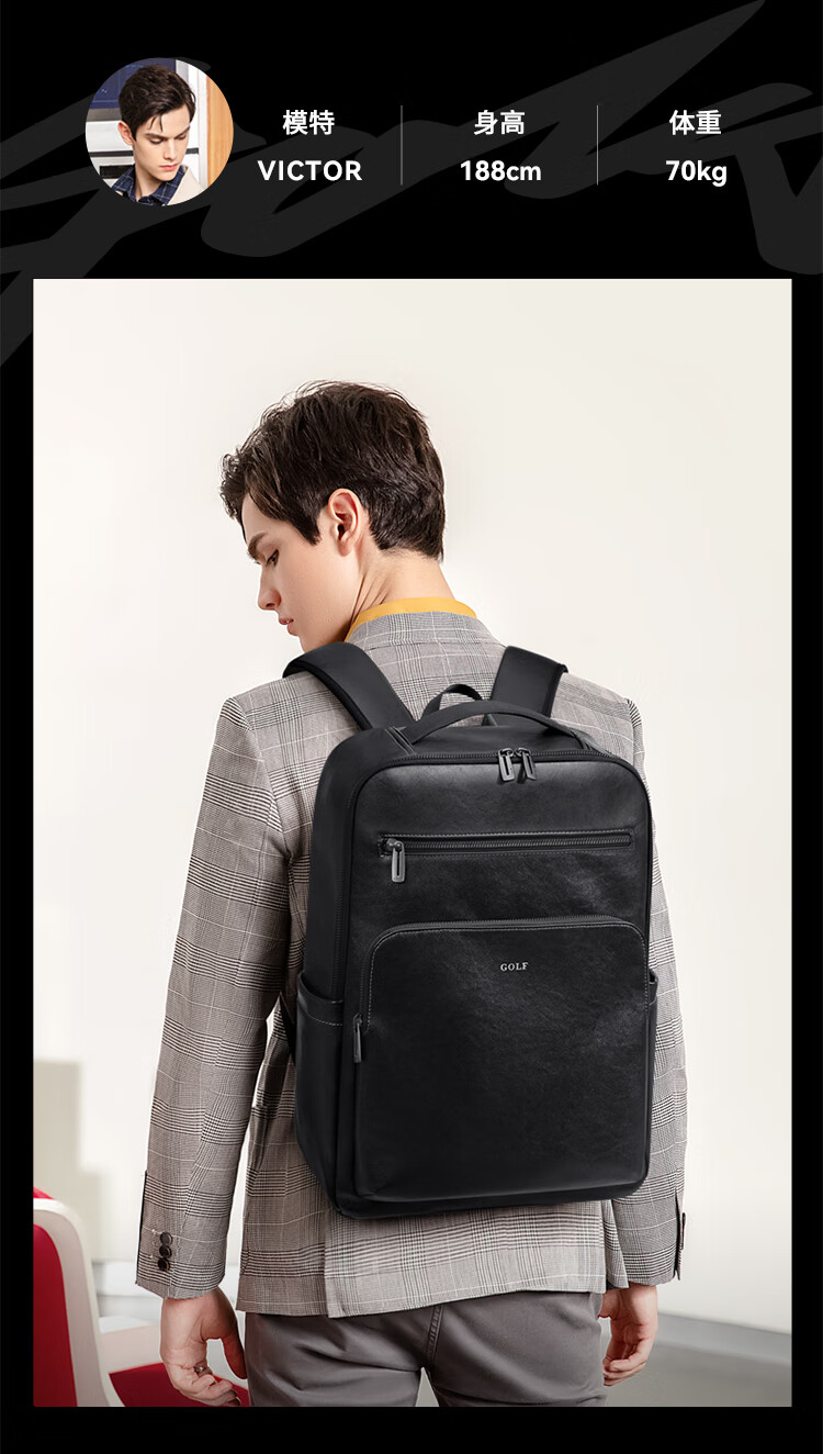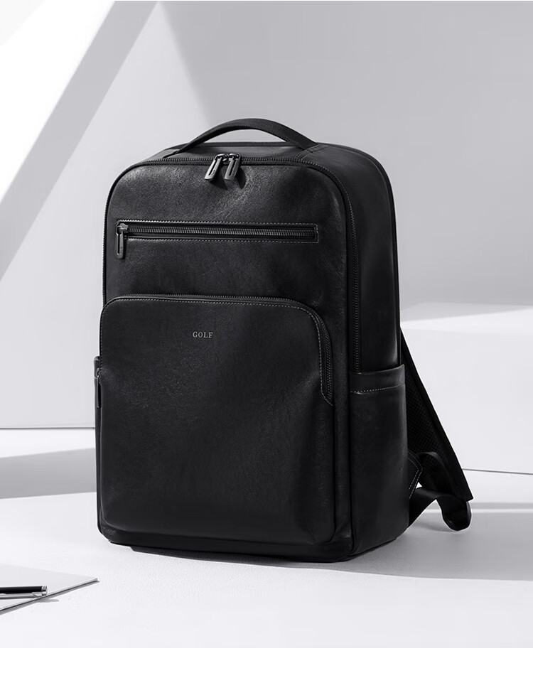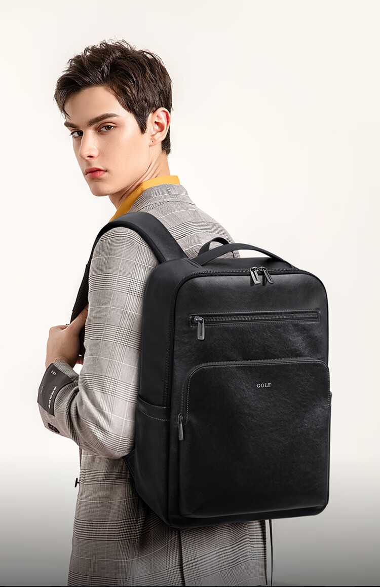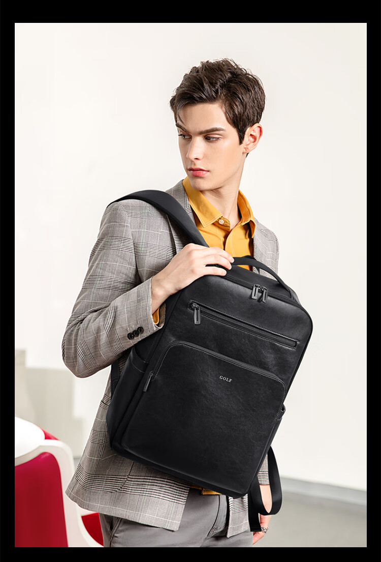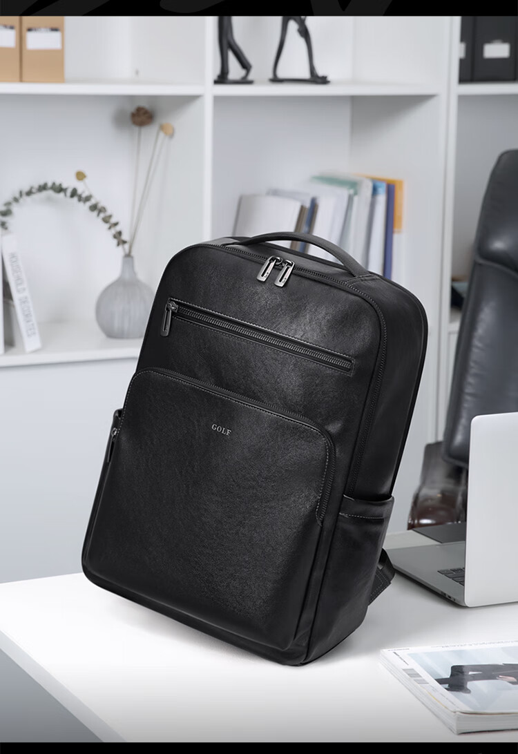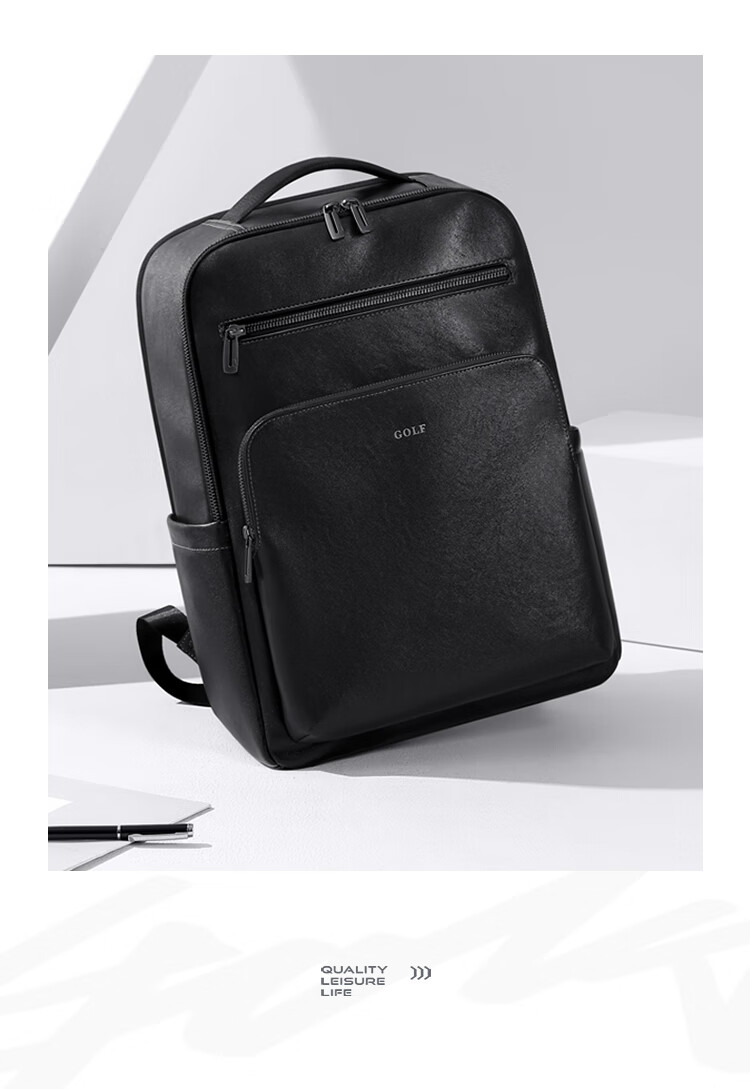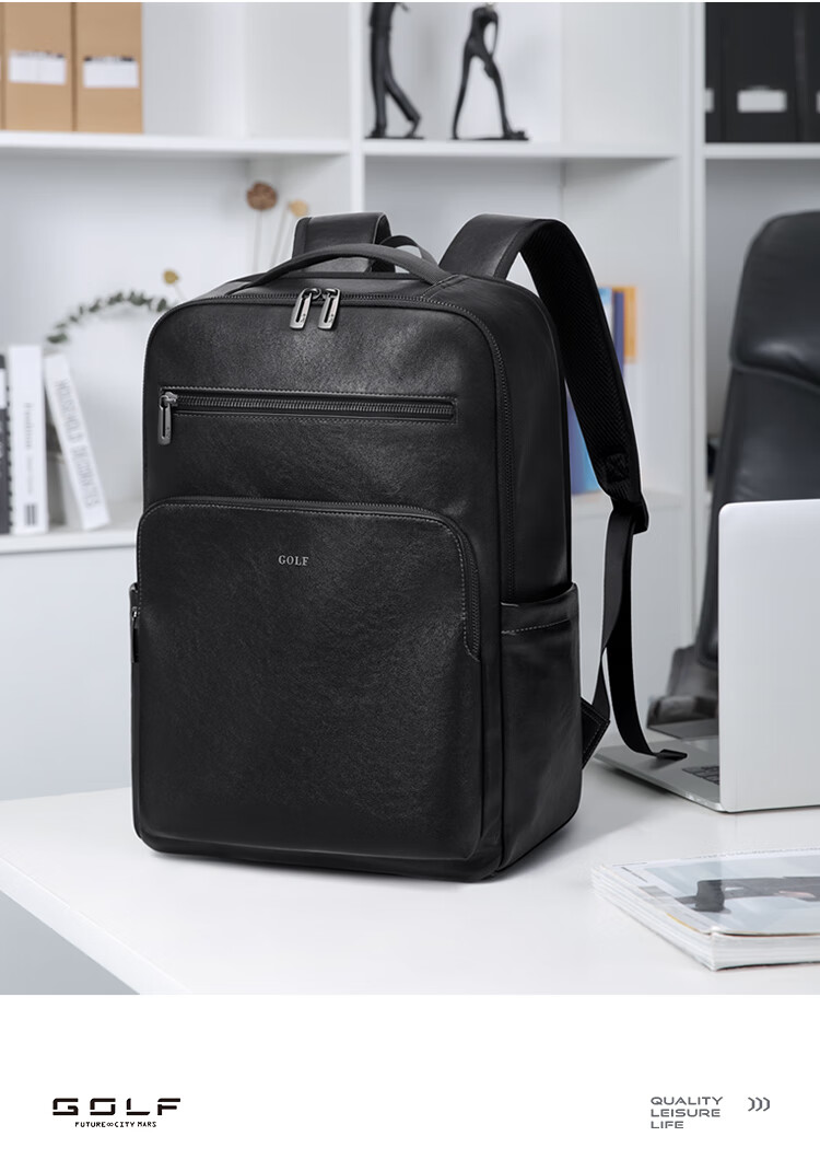 Golf (GOLF) backpack men's soft leather backpack men's 15.6/16-inch computer bag multi-compartment business trip travel backpack