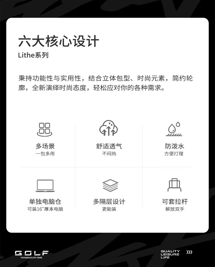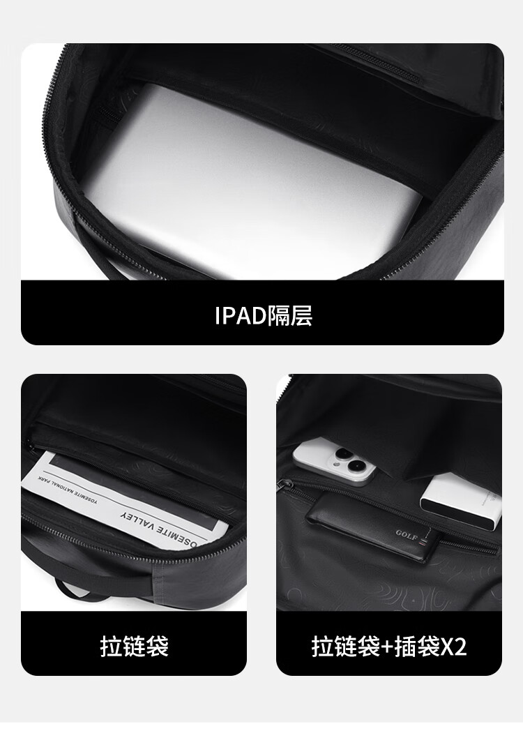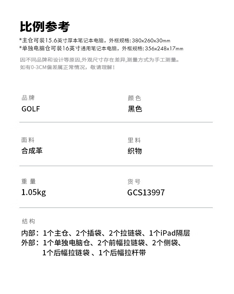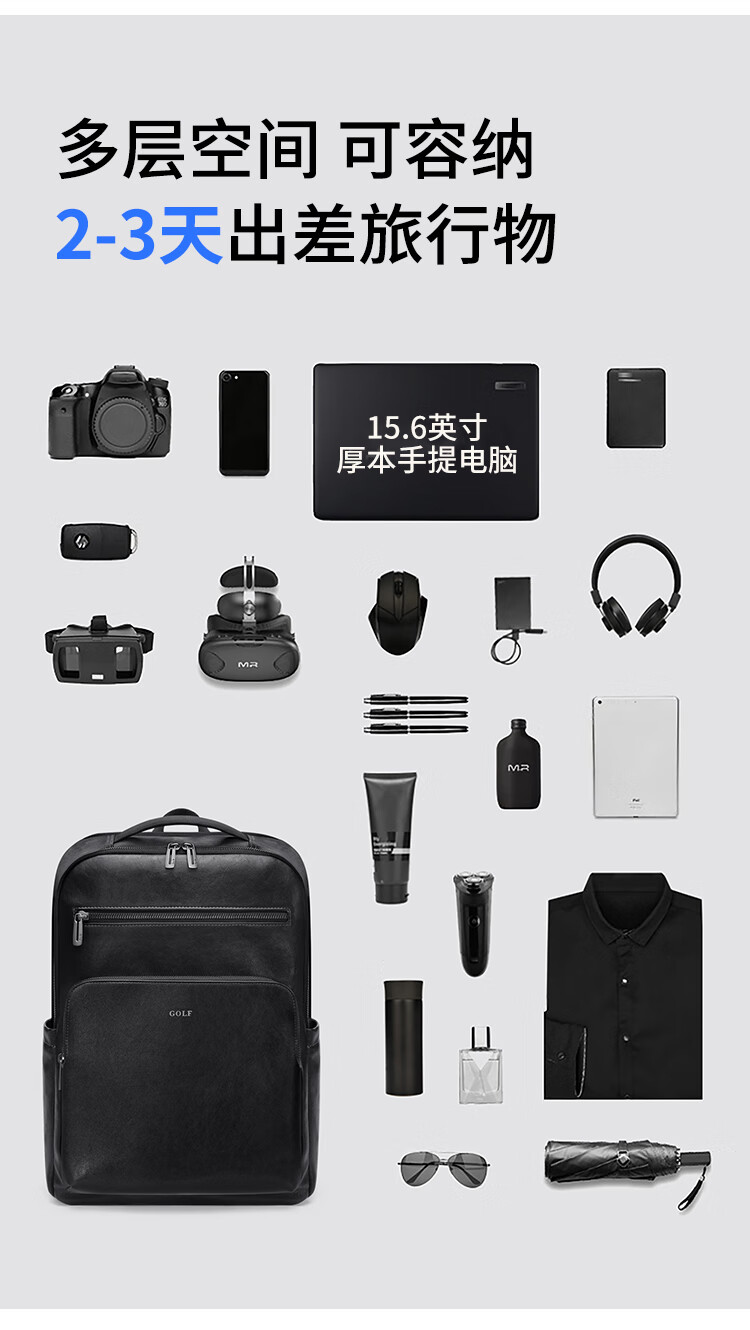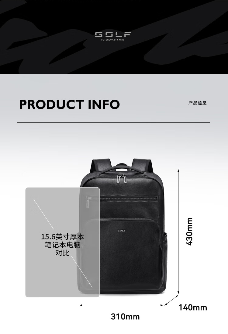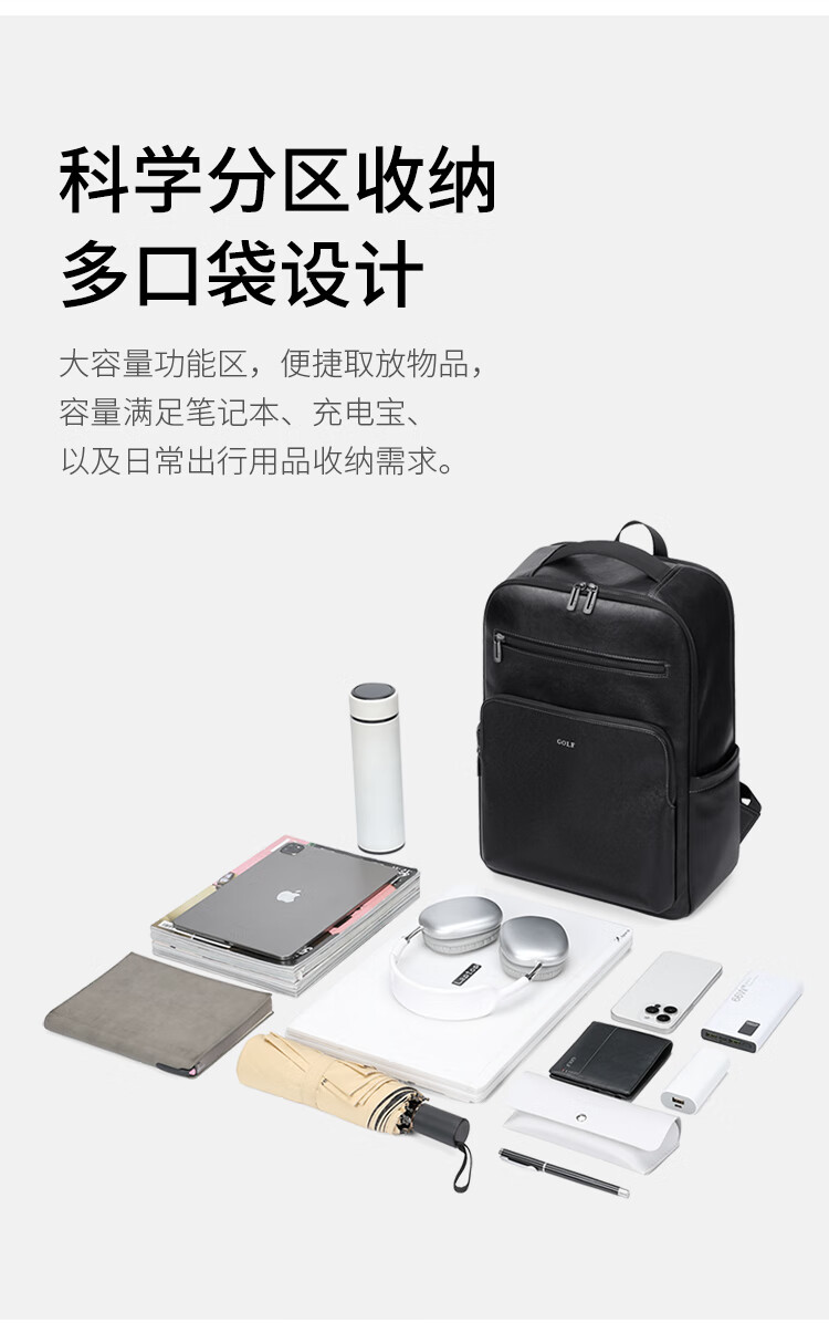 Golf (GOLF) backpack men's soft leather backpack men's 15.6/16-inch computer bag multi-compartment business trip travel backpack